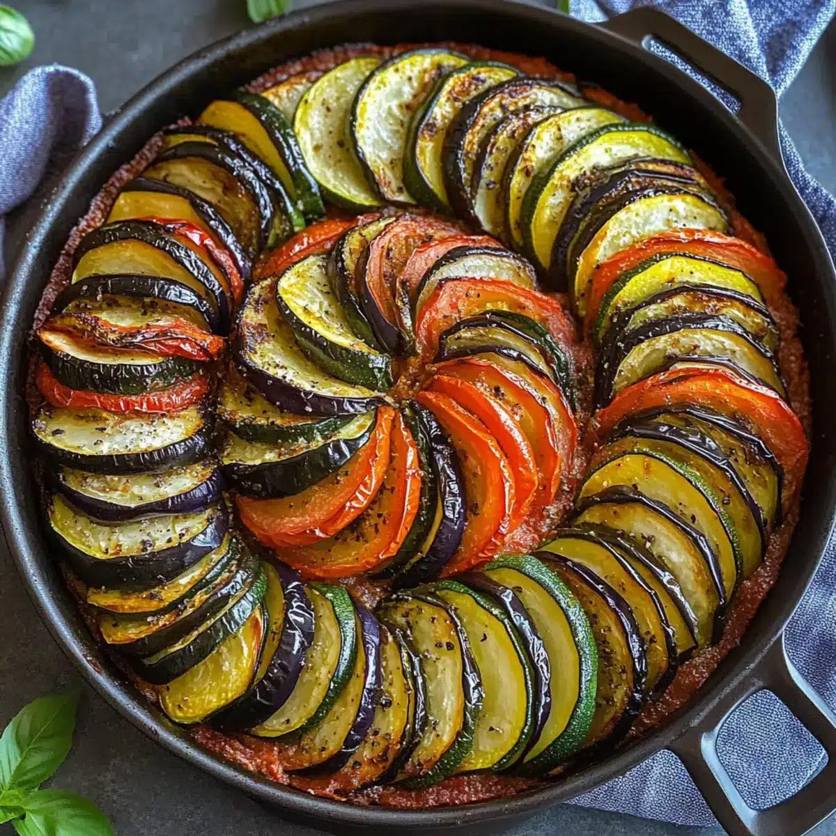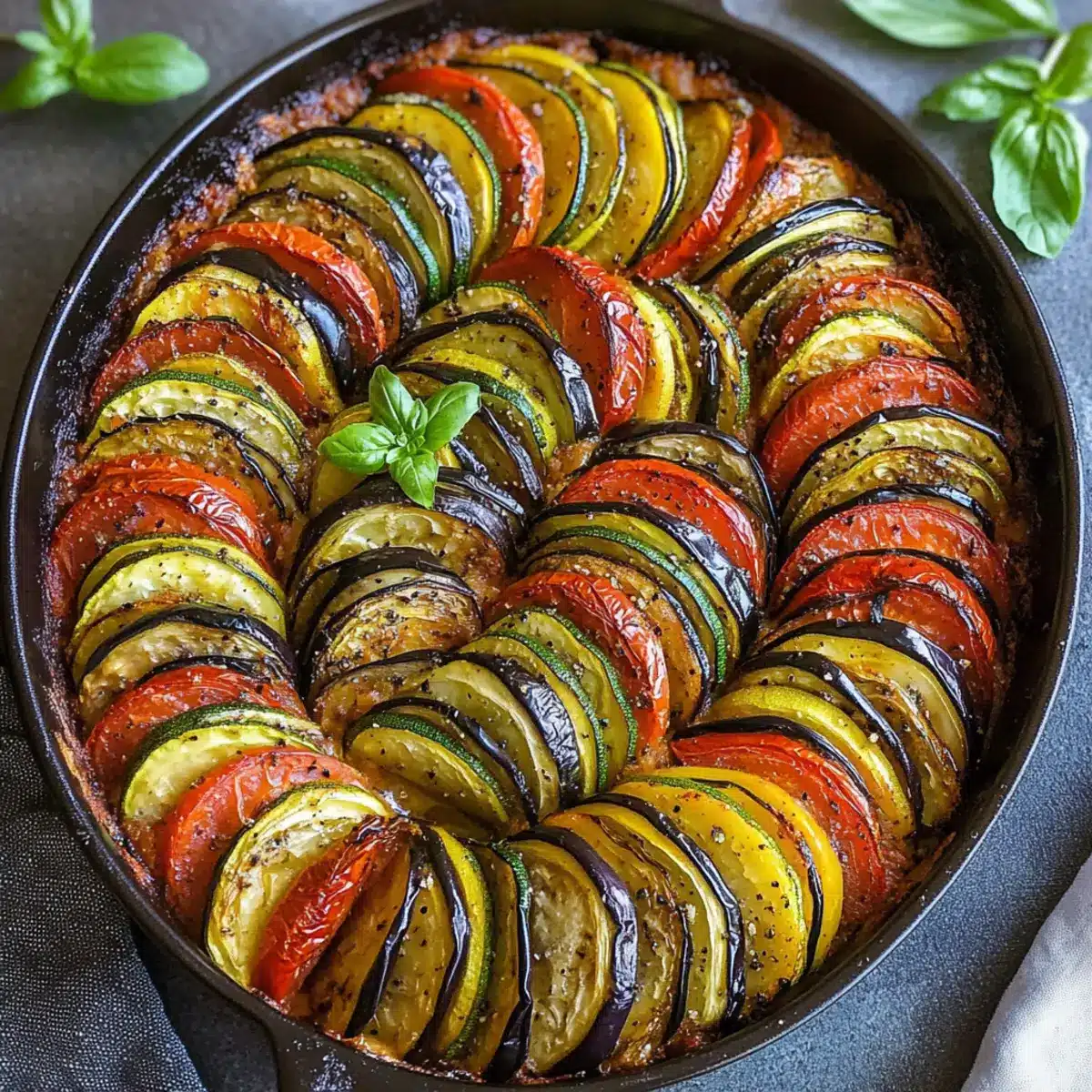 Layering Matter: Make sure to layer your vegetables neatly; they will cook more evenly and create a beautiful presentation in your Baked Ratatouille.