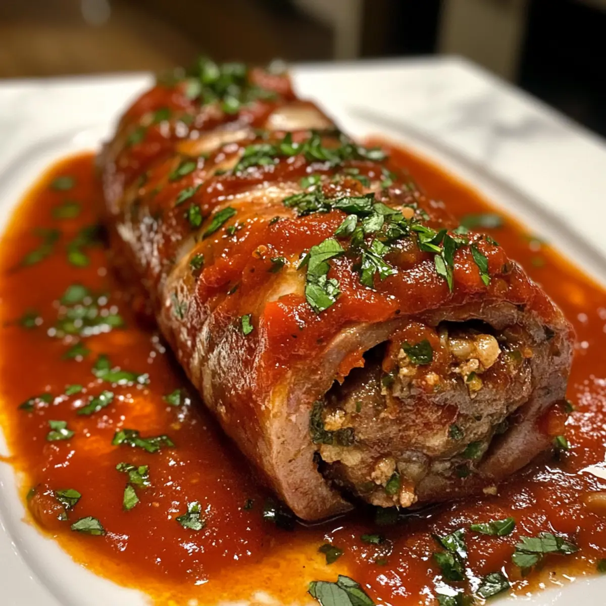 After resting, carefully slice the braciole into thick pieces. Serve each slice topped with additional marinara sauce and a sprinkle of fresh herbs if desired. Paired with creamy polenta or roasted vegetables, this Melt in Yo Mouth Beef Braciole is sure to impress your family and friends!