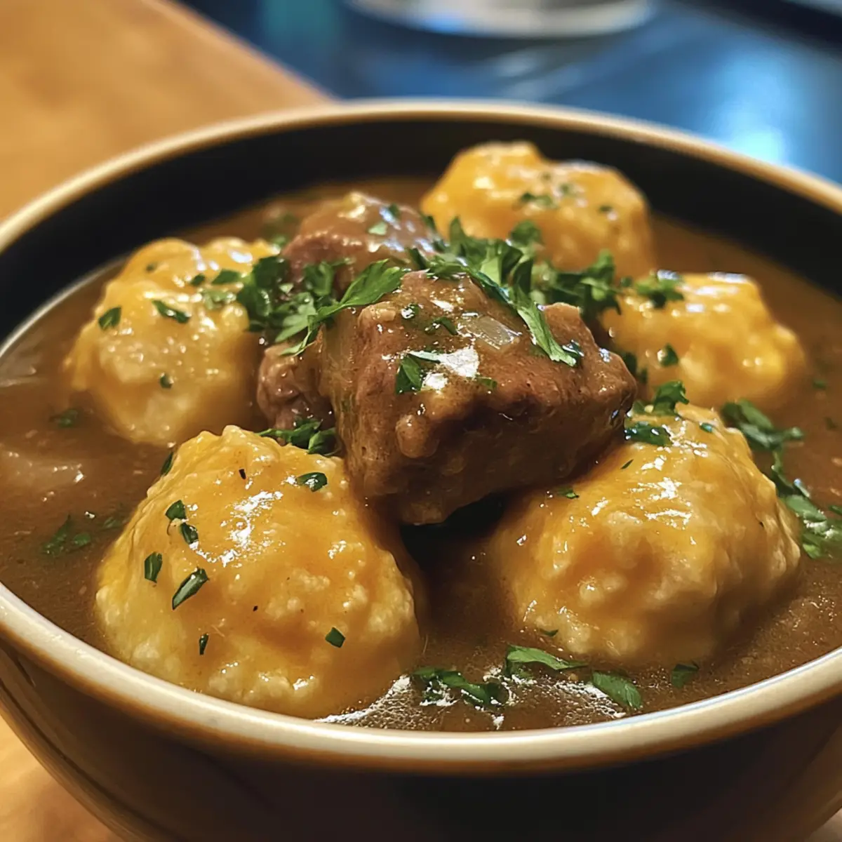 Once the dumplings are cooked, remove the bay leaf from the stew. Serve piping hot, garnished with fresh parsley for a vibrant touch. Your Beef Stew with Cheddar Herb Dumplings is now ready—enjoy the warm flavors that fill your home with comfort and satisfaction!