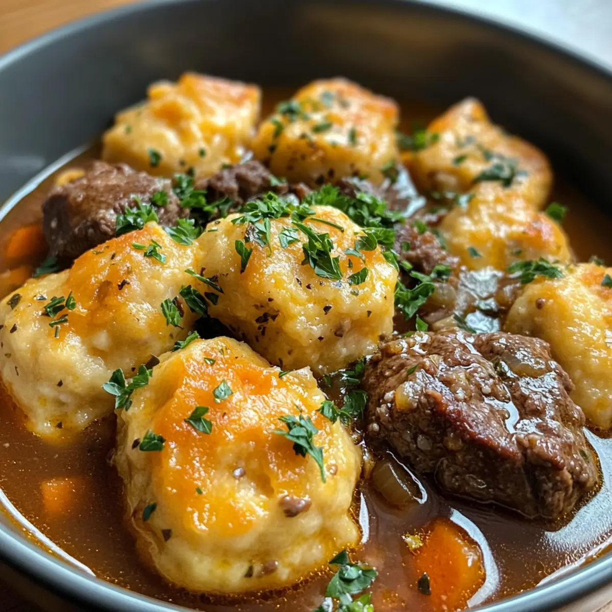 Hearty Beef Stew with Cheddar Herb Dumplings to Savor
