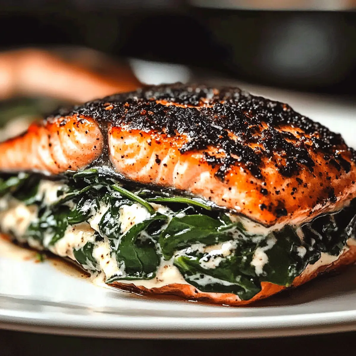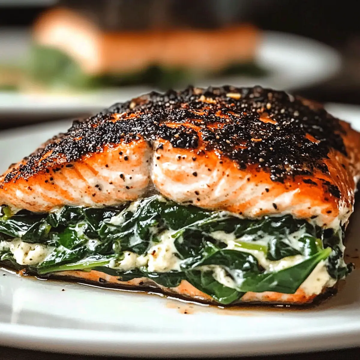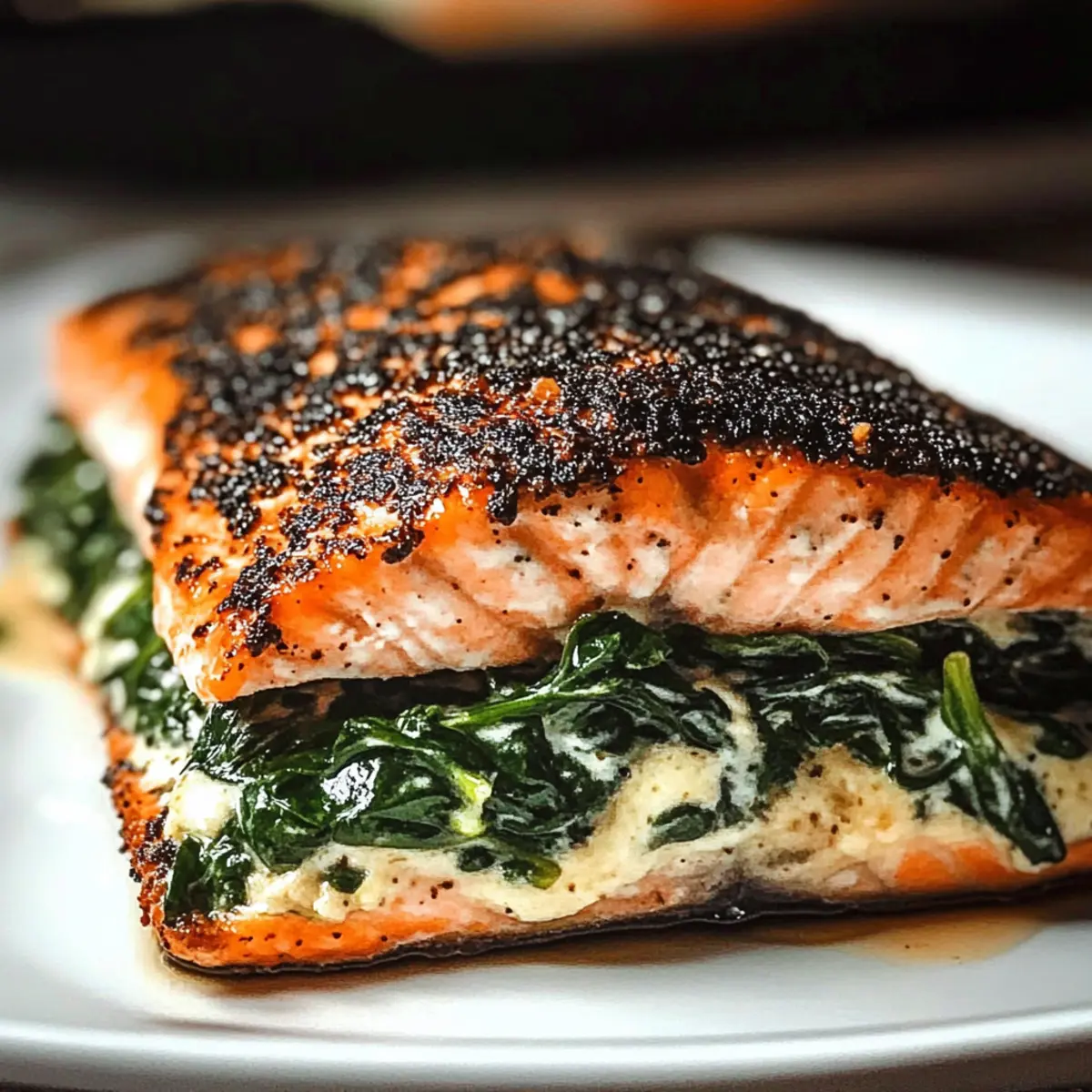 Savor Blackened Salmon Stuffed with Spinach & Parmesan Delight