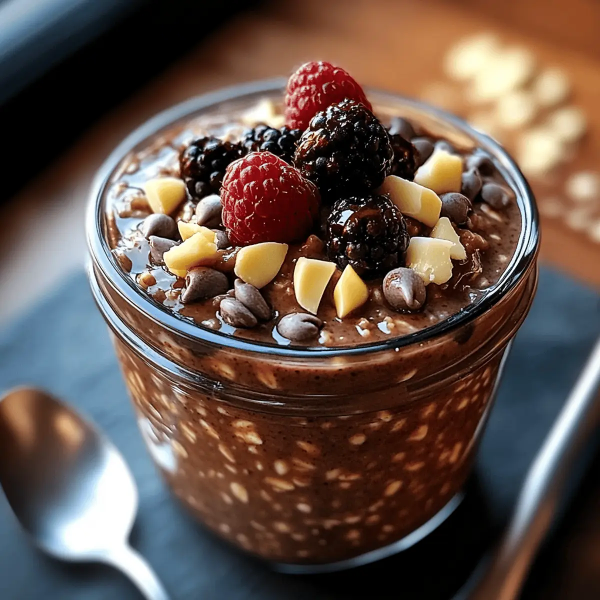 Absolutely! For the best flavor and texture, use rolled oats that are fresh and free from moisture; they should not have an off smell. When selecting cocoa powder, go for unsweetened varieties that look deep, dark, and natural—it makes a world of difference in taste. If you’re using fruits for topping, pick berries that are vibrant and free of dark spots. They should be slightly firm to the touch for optimal freshness.
