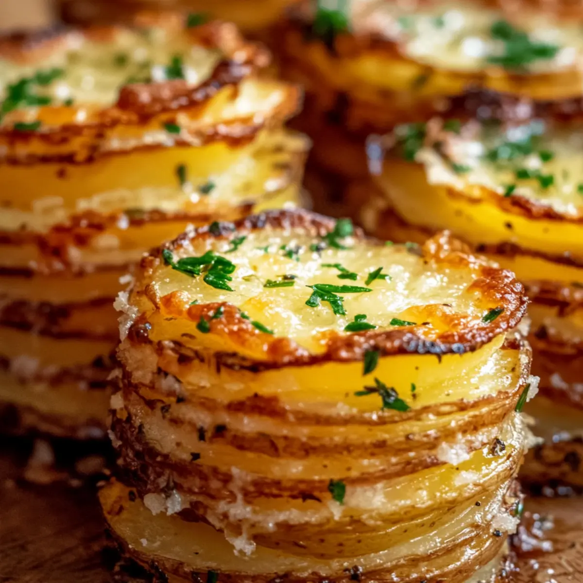 Crispy Parmesan Potato Stacks with Savory Garlic Butter Bliss