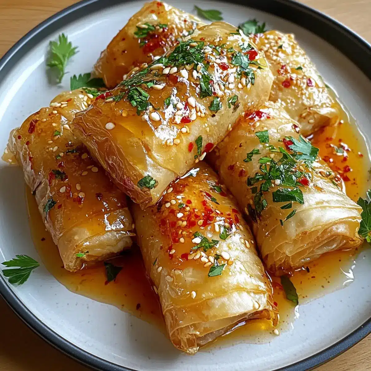 Crispy Oven Fried Feta Rolls with Chili Honey Bliss