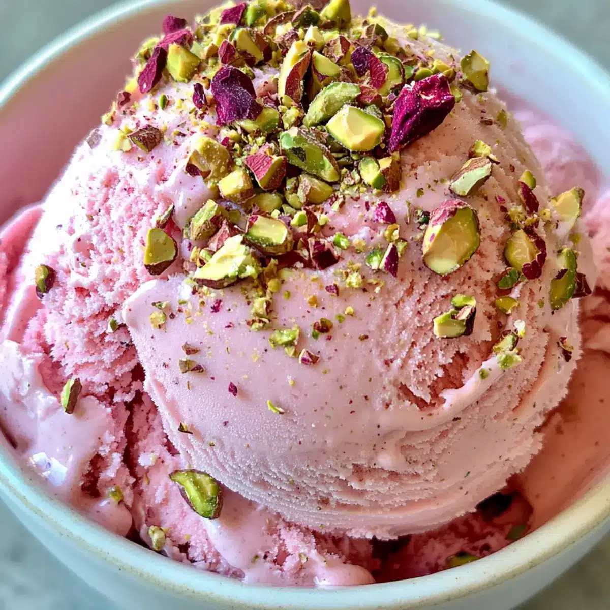 Creamy Rose Ice Cream with a Floral Twist and Crunchy Nuts