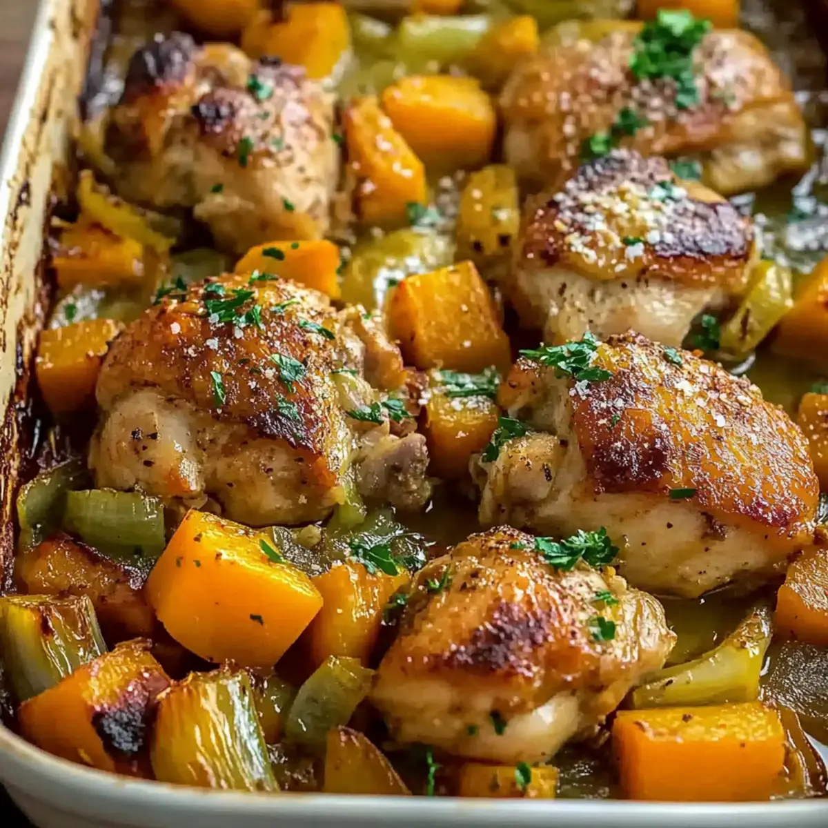 One-Pan Roasted Chicken Leek and Butternut Squash Bake Bliss