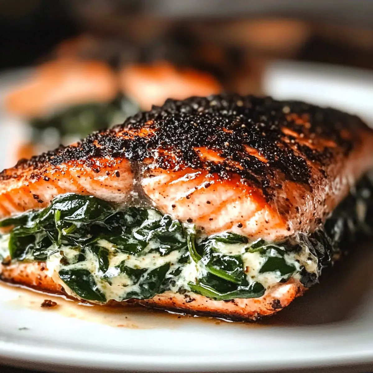 Savor Blackened Salmon Stuffed with Spinach & Parmesan Delight