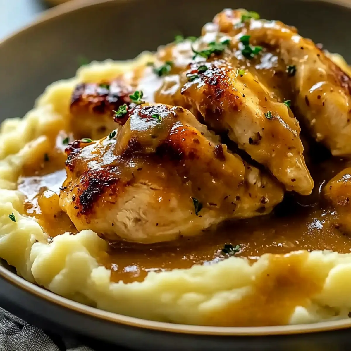 Savor Chicken and Garlic Gravy with Cheesy Mashed Potatoes