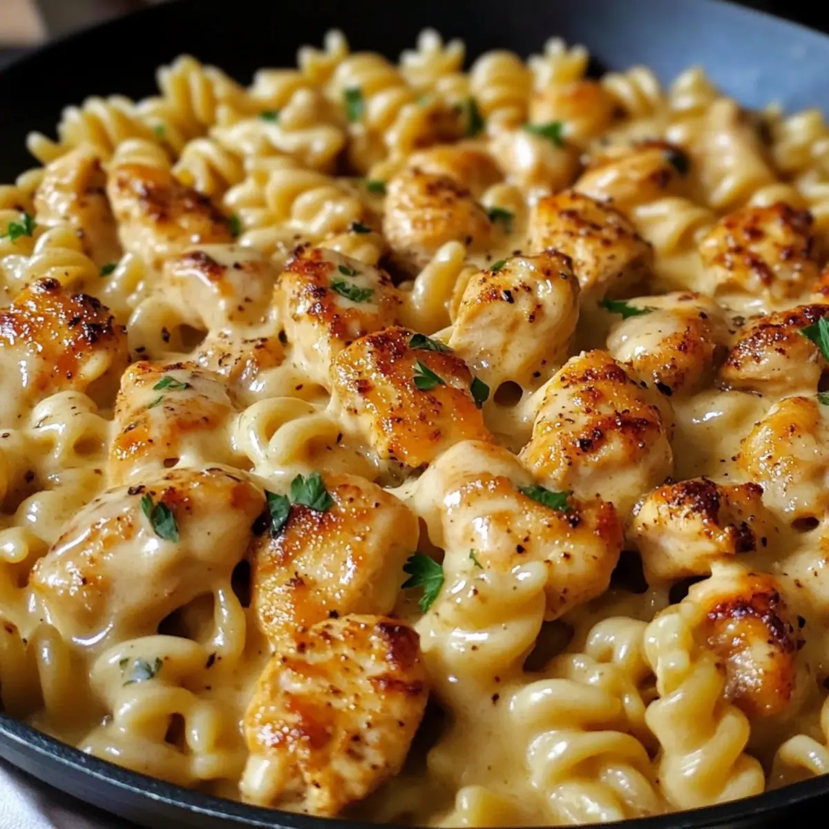 Irresistible Cheesy Cajun Garlic Chicken Rotini Skillet Recipe