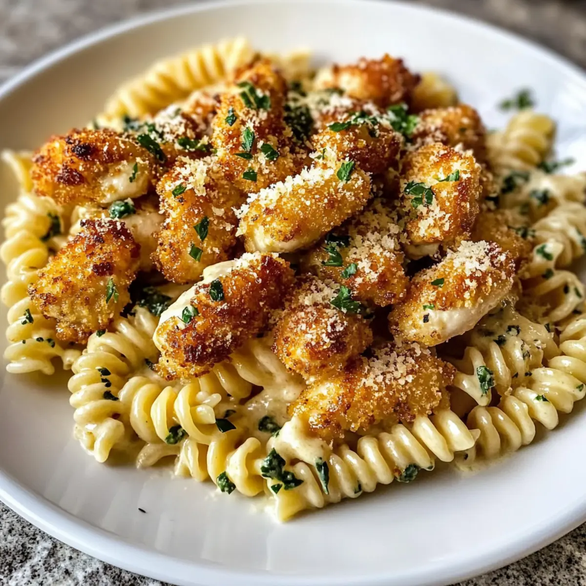 Garlic Parmesan Chicken Bites with Creamy Rotini Delight