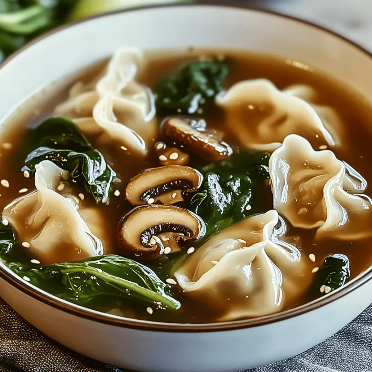 Comforting Potsticker Soup with Mushrooms & Bok Choy Delight