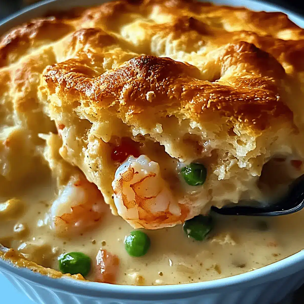 Place the baking dish in your preheated oven and bake for 25-30 minutes, or until the biscuit tops are golden brown and flaky. The aroma will fill your kitchen—let it cool slightly before serving. Your Cheddar Bay Biscuit Seafood Pot Pie is now ready to be enjoyed, bringing comfort and joy to your table!