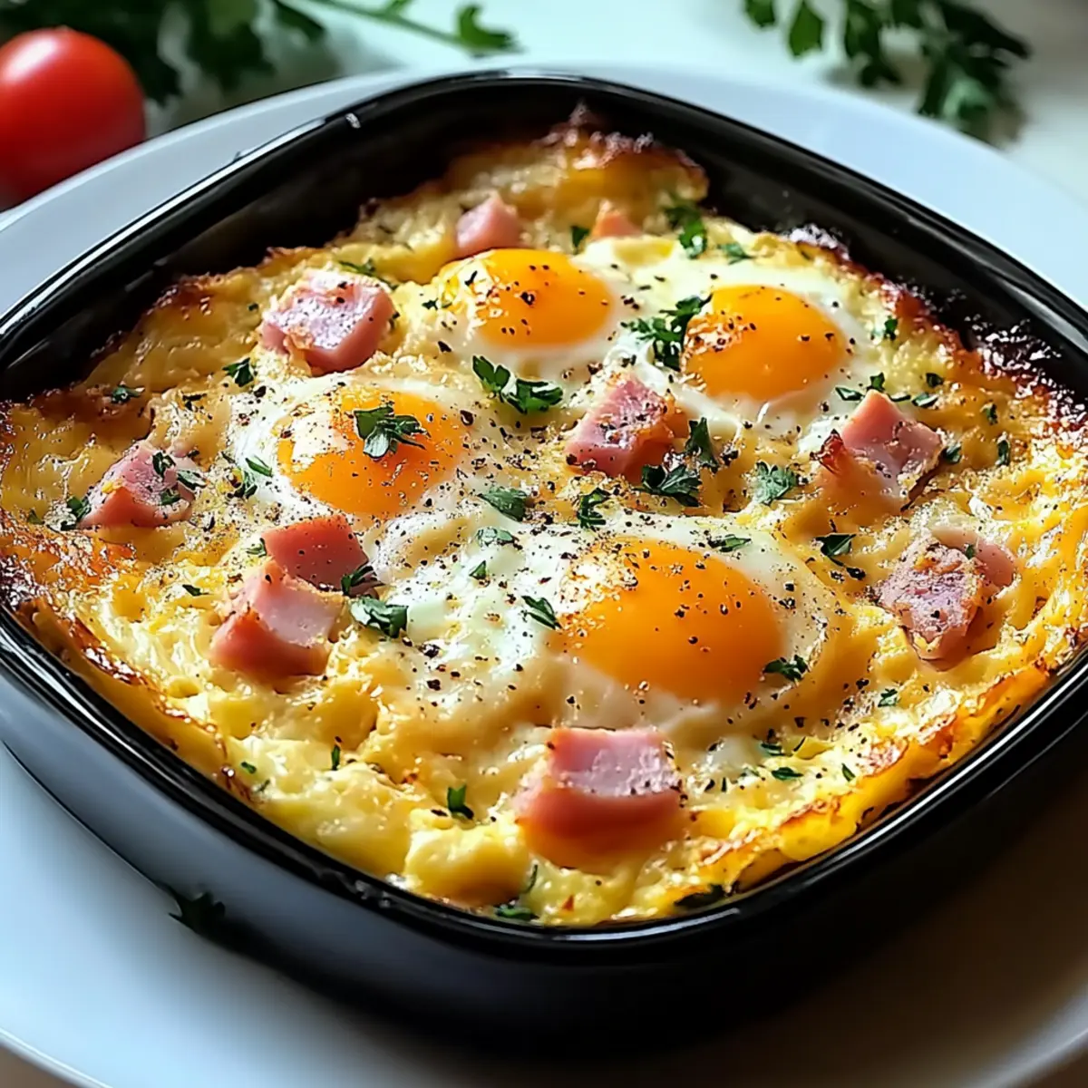 Crispy Hash Browns: Golden-brown, crunchy hash browns provide a delicious textural contrast that pairs beautifully with the fluffy egg bake.