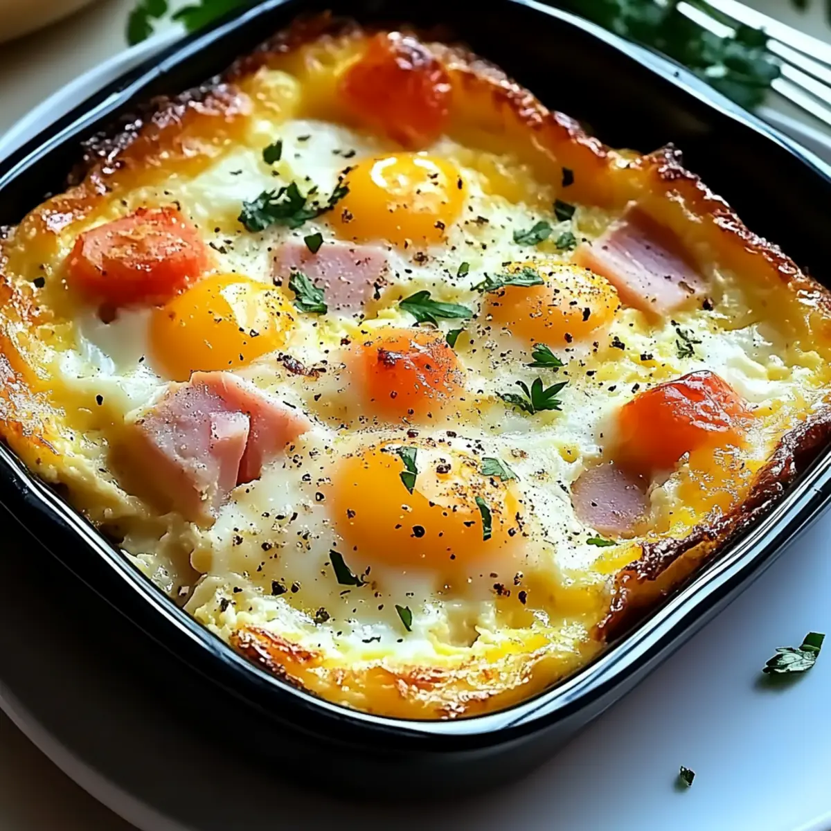 Versatile and Customizable: This Cheesy Egg Bake can be tailored to fit any palate – swap in your favorite vegetables or cheeses for a unique twist every time. Beginner-Friendly: The straightforward method makes it perfect for novice cooks, ensuring success with each bake. Make-Ahead Convenience: Prep this dish the night before for a stress-free morning; simply pop it in the oven! Rich, Savory Flavor: Every bite bursts with cheese, ham, and veggies, capturing the essence of comfort food. For more dynamic brunch ideas, try pairing it with a refreshing side like a light salad or explore a delightful variant like our Marry Bake Raspberry for dessert. Enjoy!