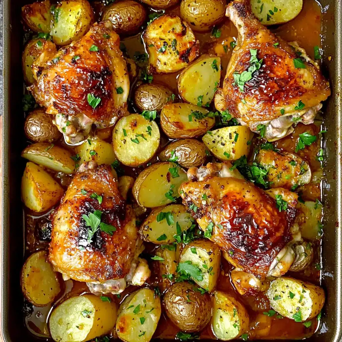 Versatility Boost: Feel free to add seasonal veggies like bell peppers, carrots, or zucchini to the pan. They not only enhance nutrition but also add vibrant colors alongside your chicken and potatoes.