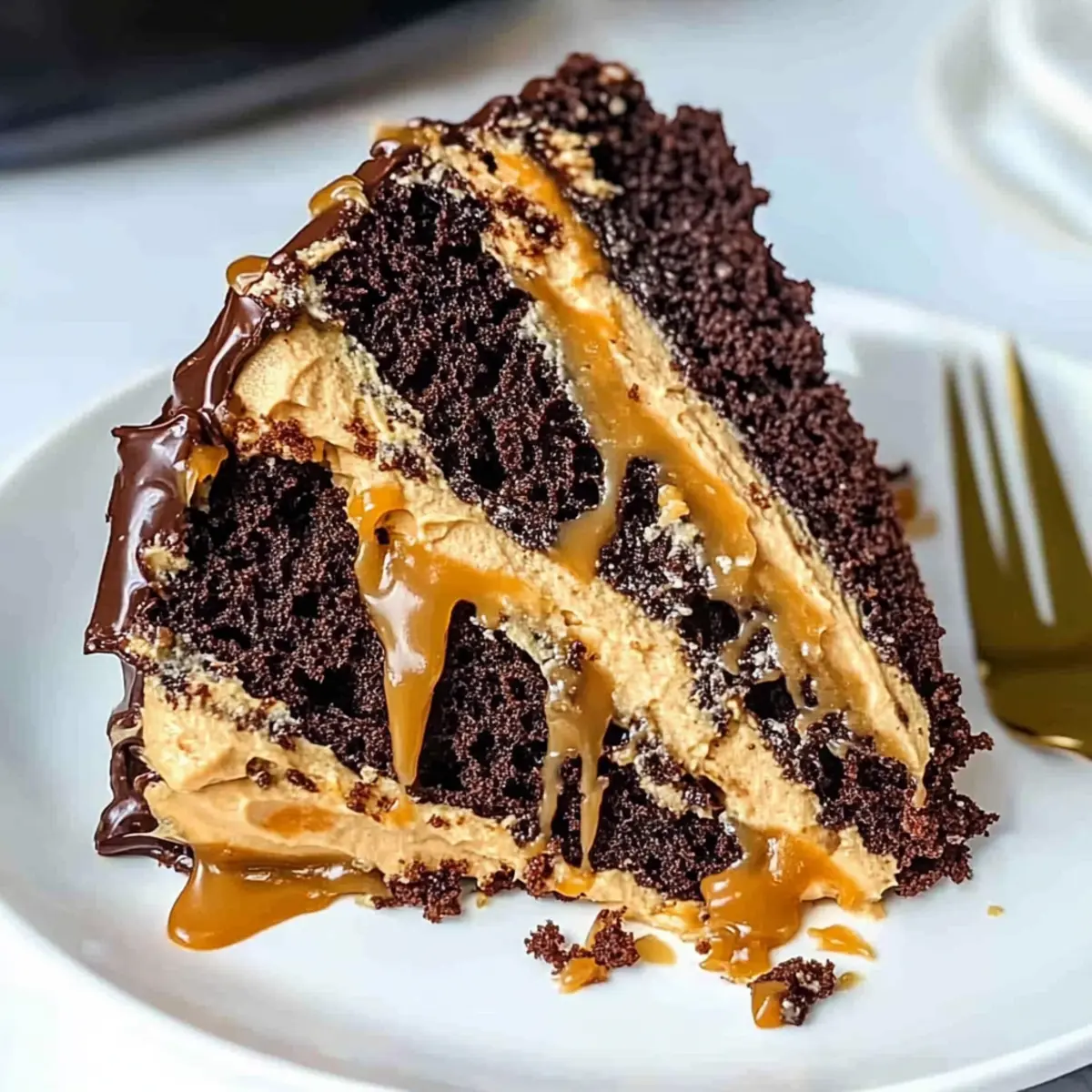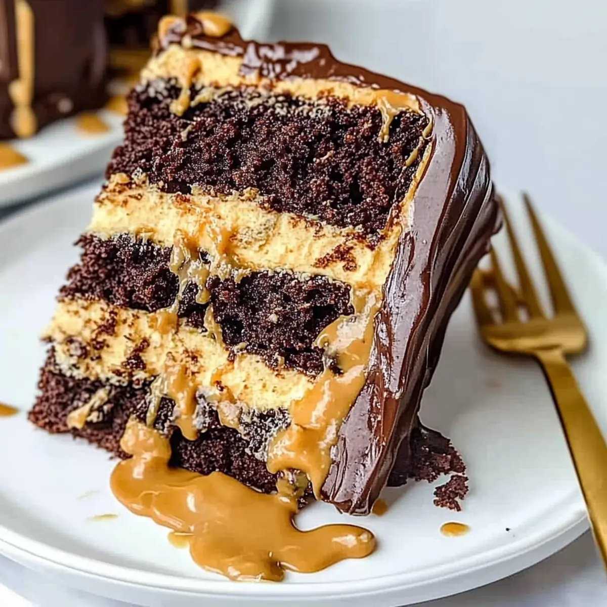 Fruity Surprise: Layer in some banana slices or caramelized apples between the cake layers. The fruity elements add a fresh contrast to the dense chocolate and peanut butter.