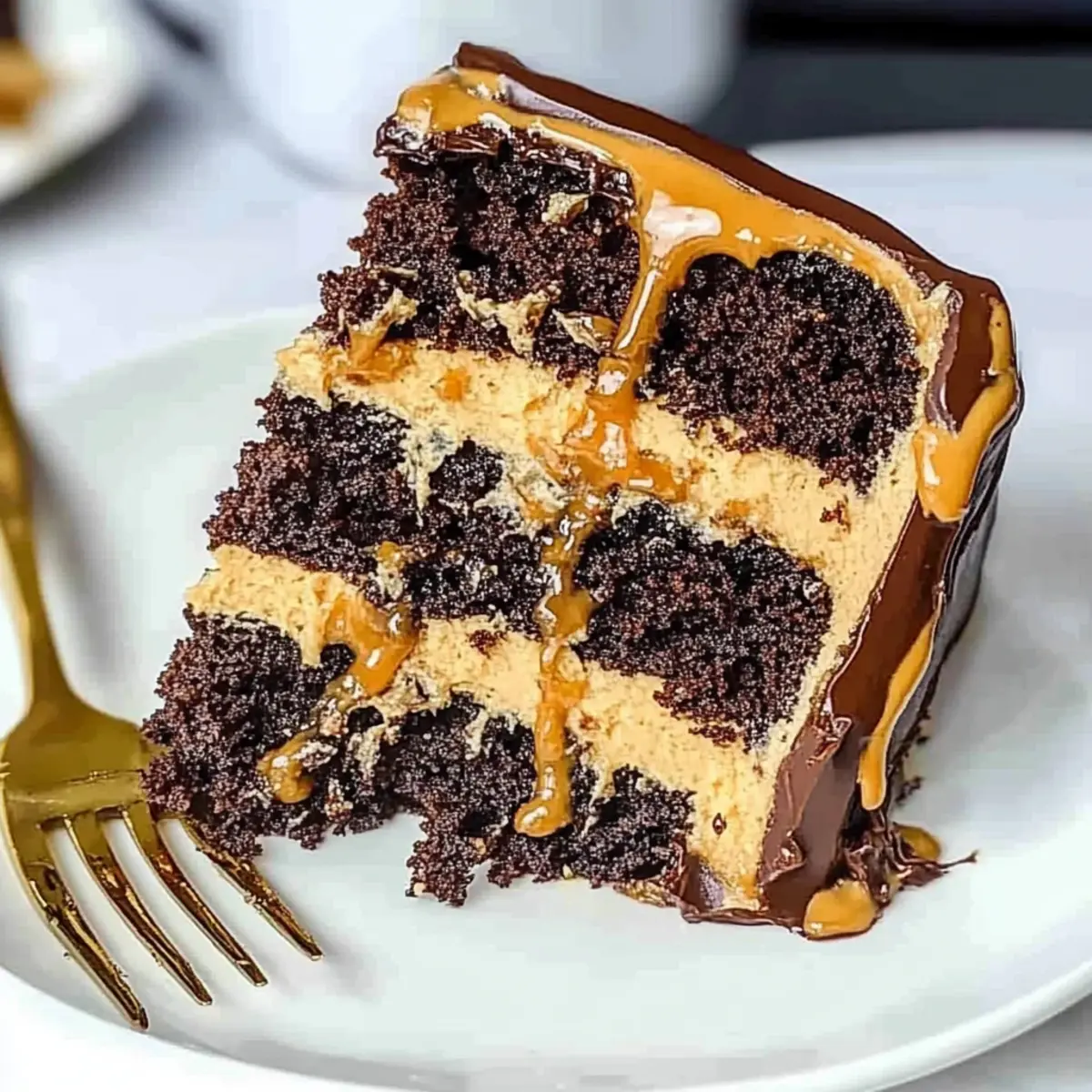 Decadence at Its Finest: This cake combines rich chocolate layers with creamy peanut butter frosting, bringing the beloved candy bar to life in a scrumptious dessert.