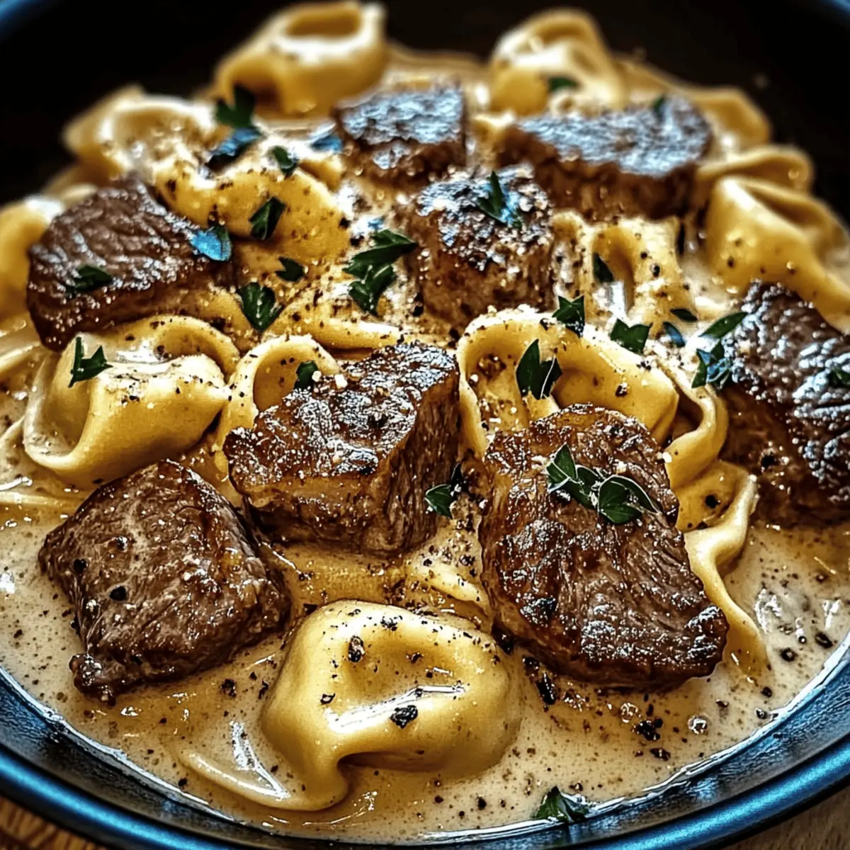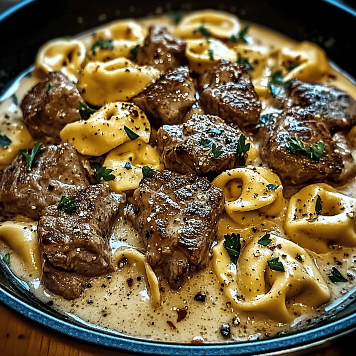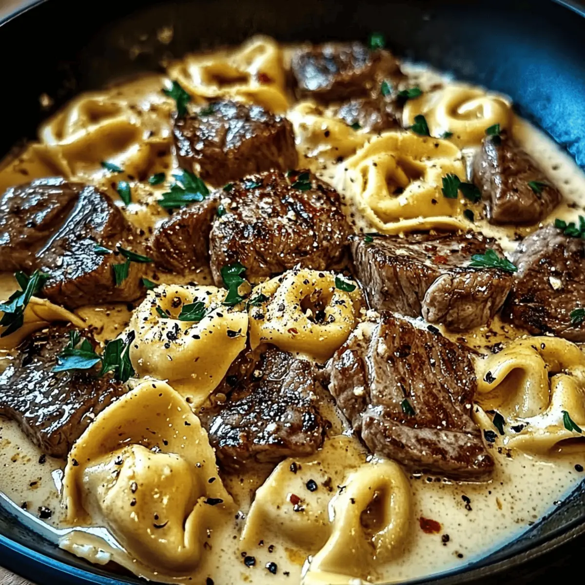 Creamy Cracked Garlic Steak Tortellini in Sauce Bliss