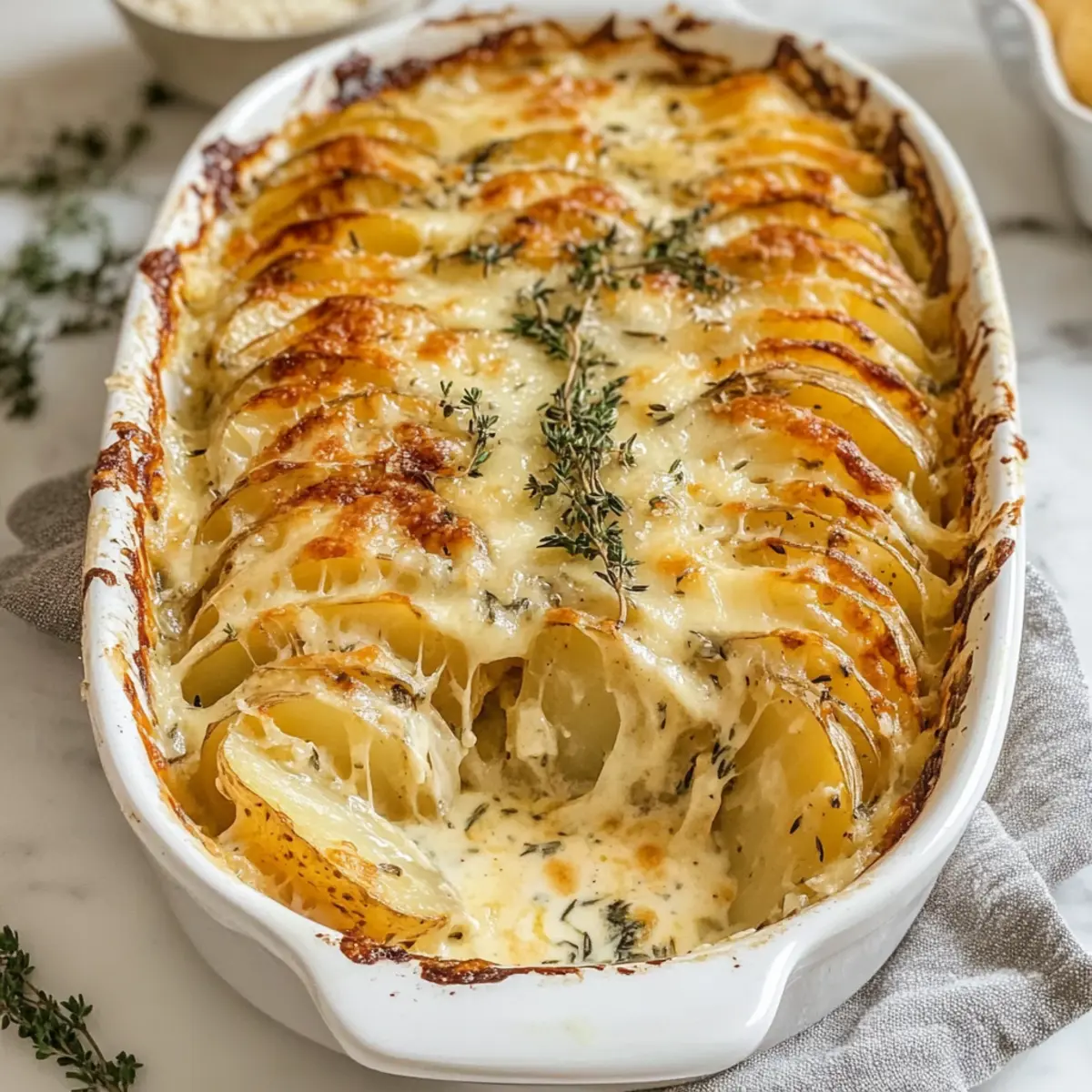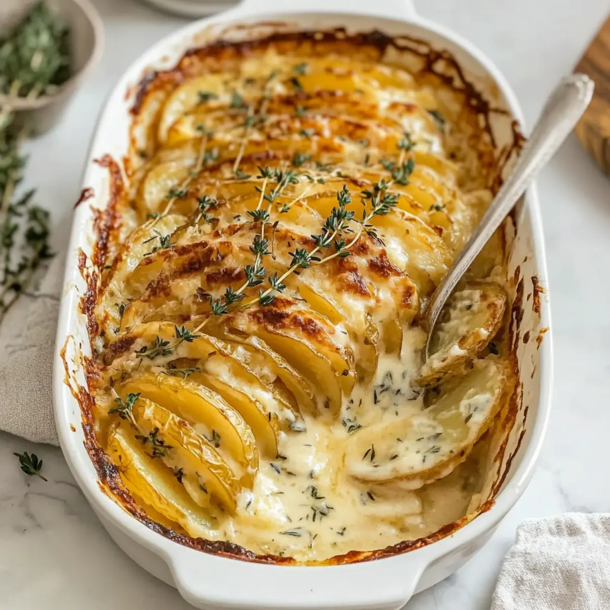 Gourmet Finish: Top the baked scalloped potatoes with a sprinkle of freshly grated Parmesan and a drizzle of truffle oil before serving for an indulgent touch reminiscent of five-star dining.