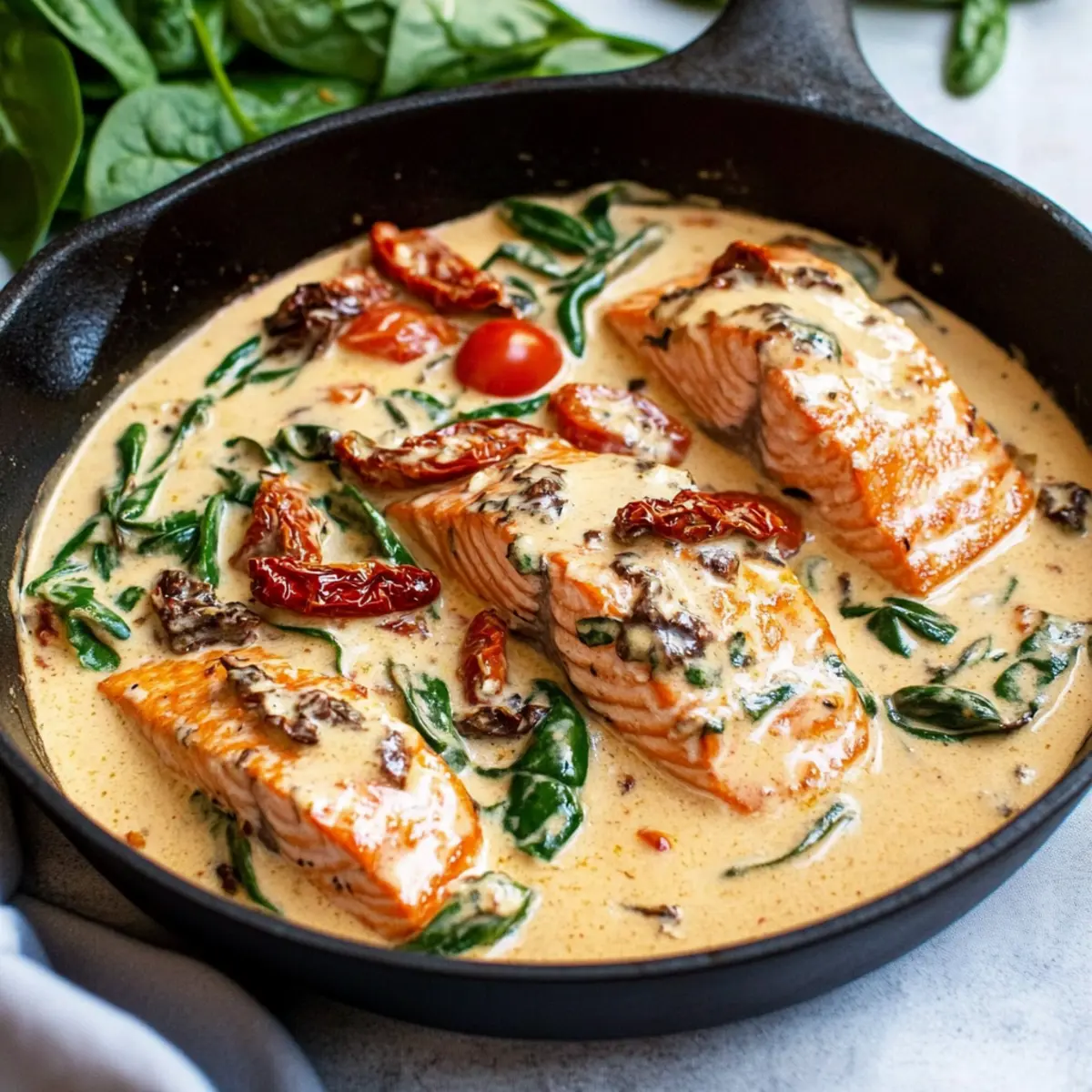 Experience the delight of Creamy Tuscan Salmon with these essential ingredients!