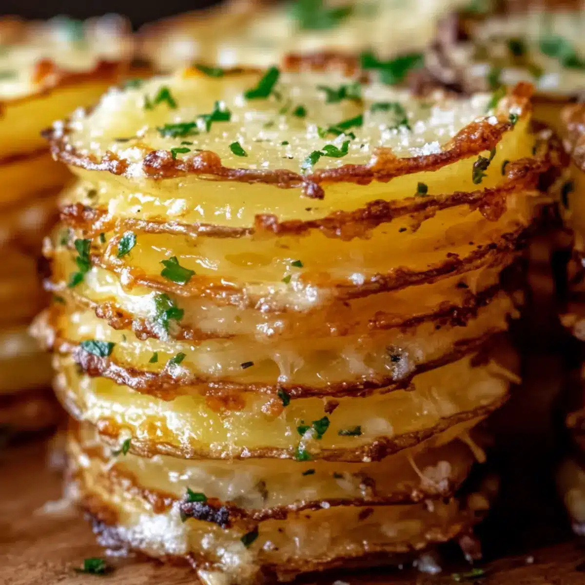 Crispy Parmesan Potato Stacks with Savory Garlic Butter Bliss
