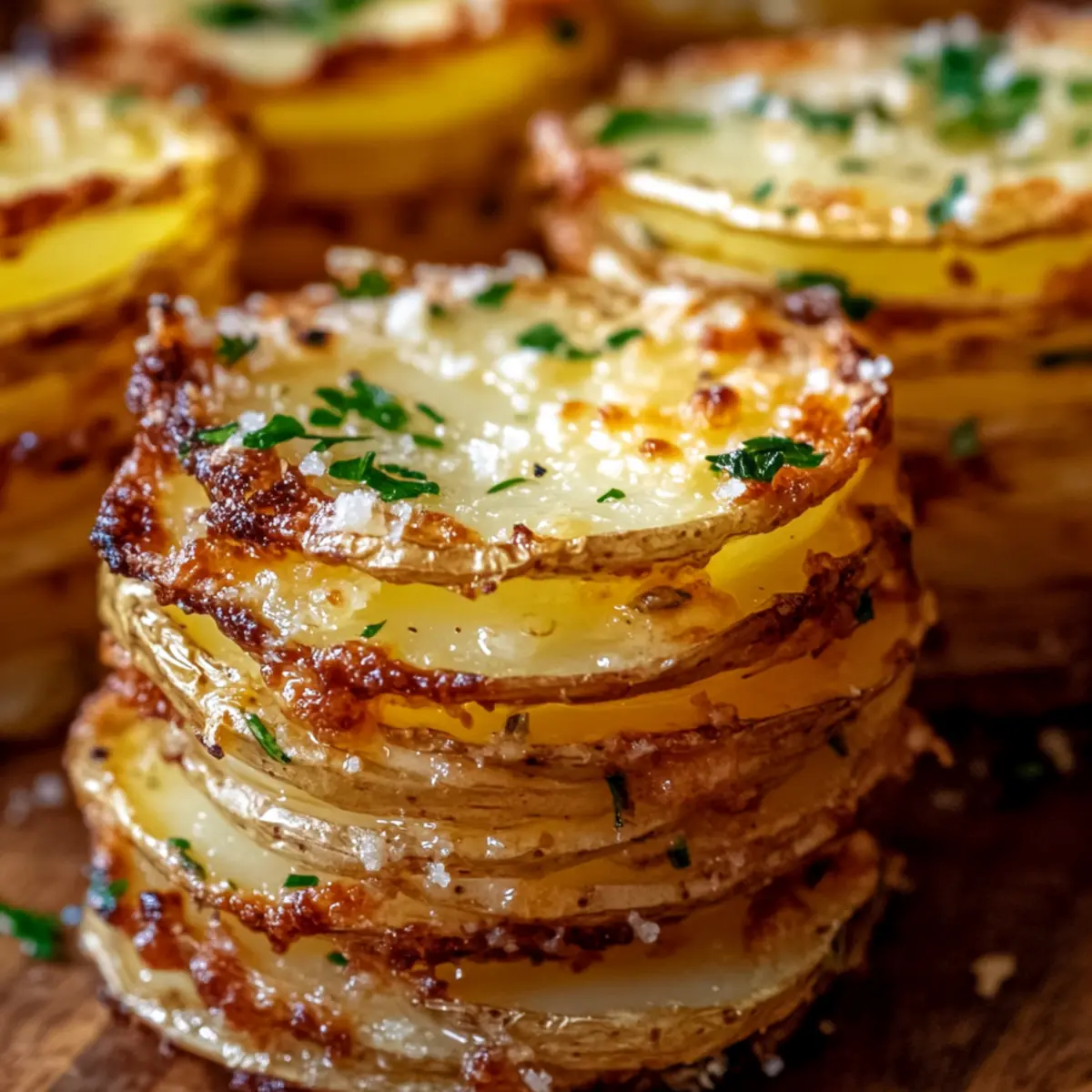 As the aroma of garlic and melting cheese dances through my kitchen, I’m reminded of the cozy gatherings that bring friends and family together—none more delightful than when I serve Crispy Parmesan Potato Stacks with Savory Garlic Butter. These golden bites, with their crispy edges and buttery centers, are not just a fantastic comfort food; they’re also a show-stopping side dish that make any meal feel like a celebration. Best of all, they come together quickly, allowing you to enjoy more time with your loved ones and less time hovering over the stove. Whether it’s a festive occasion or a simple weeknight dinner, these delightful stacks are sure to impress. Are you ready to take your cooking to the next level and wow everyone at the table? Let’s dive into this recipe!