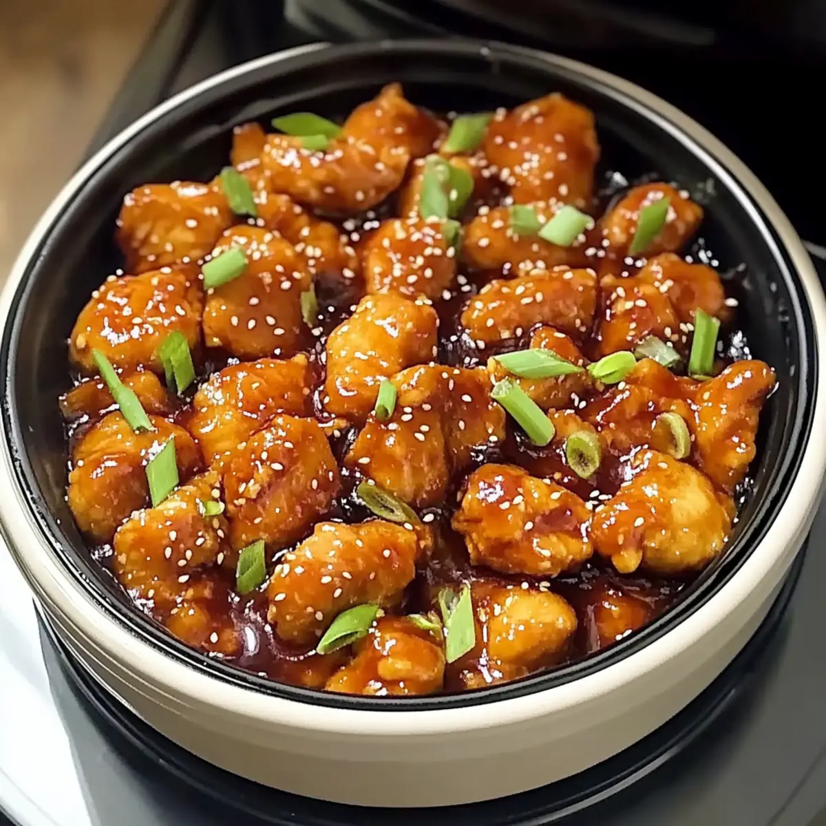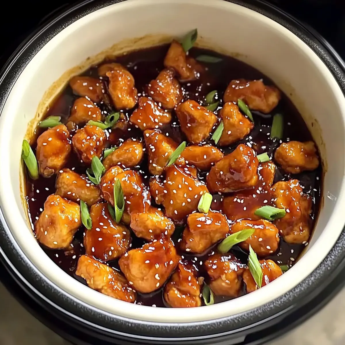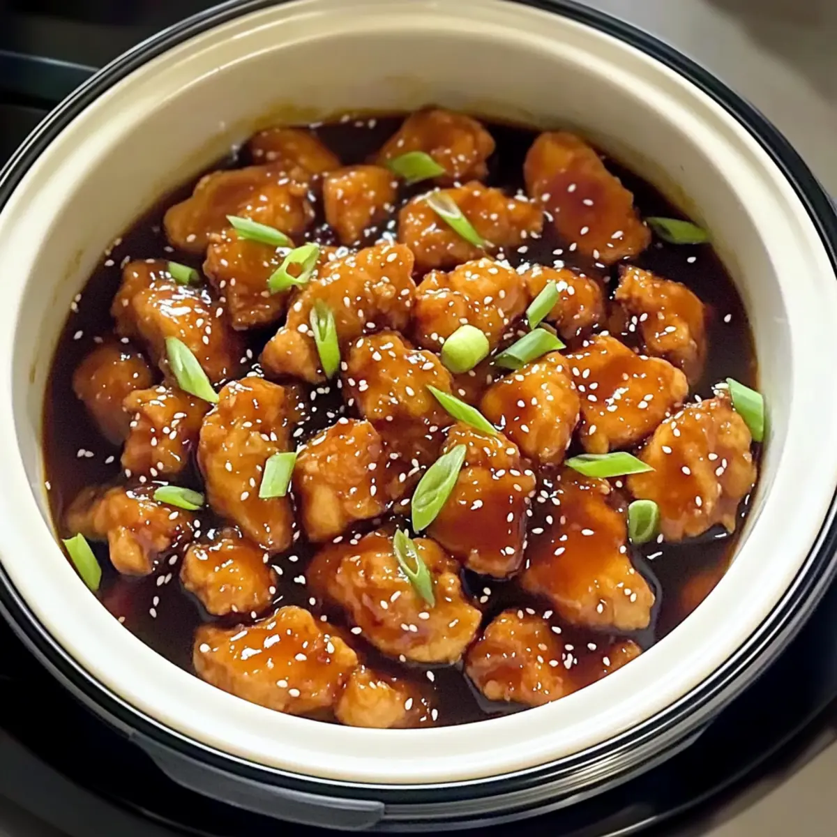 Once your Crockpot Orange Chicken is cooked to perfection, uncover the slow cooker and prepare to serve. Garnish with sesame seeds and chopped scallions, adding a delightful crunch and pop of color. Serve this comforting dish over fluffy white or brown rice, and enjoy your homemade dinner!