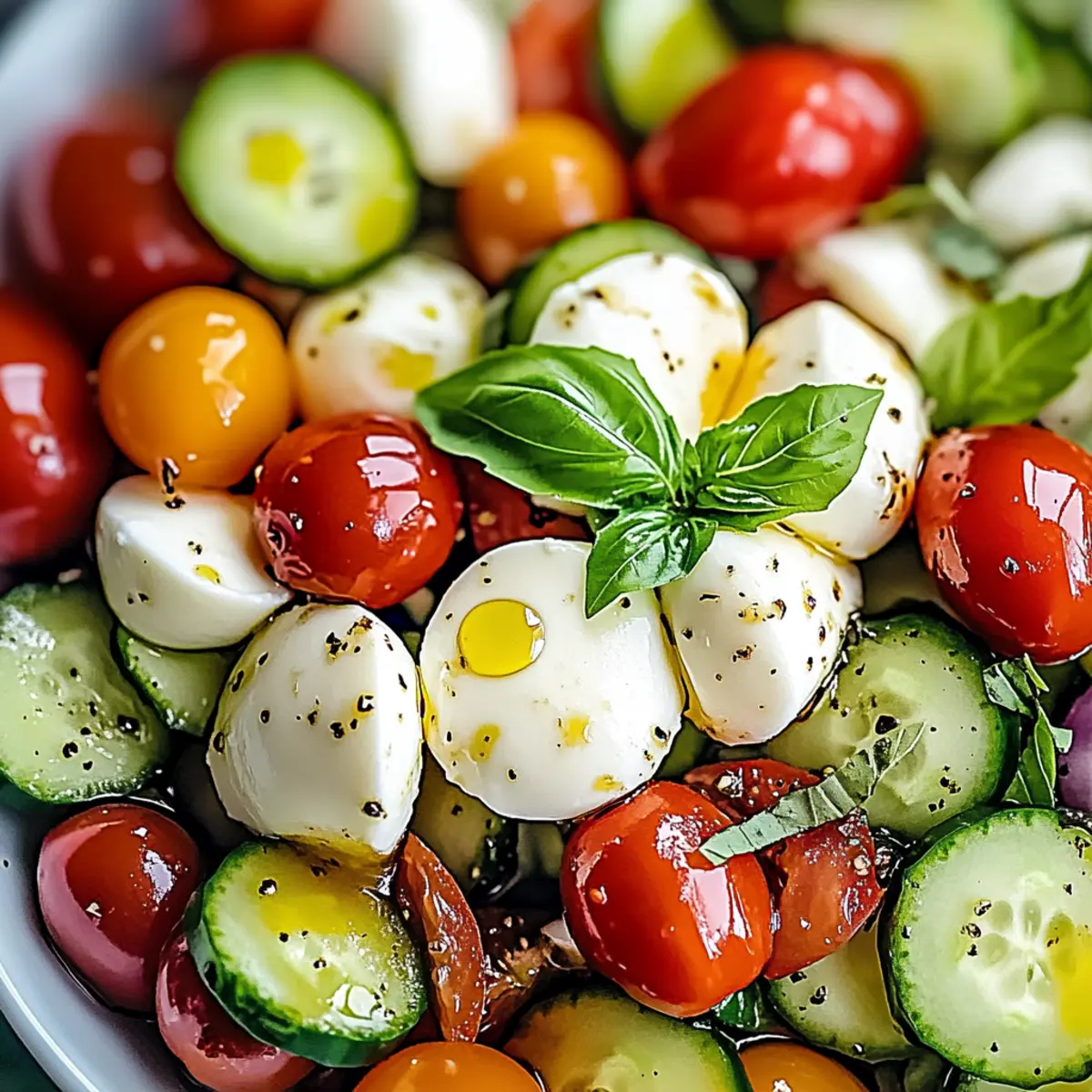 As I grabbed the first cucumber of the season, memories of sun-drenched picnics and gatherings flooded my mind. That’s when I knew it was time to whip up my Irresistible Cucumber Caprese Salad. This light and fresh dish is everything you crave for those warm summer evenings—ready in just 10 minutes! With the perfect blend of crisp cucumbers, juicy tomatoes, and rich mozzarella, it’s a delightful way to elevate any meal while keeping it healthy. Whether you’re hosting a barbecue or simply looking for a quick, nutritious side, this salad really hits the spot. Plus, it’s easily customizable; try feta for a tangy twist or even add grilled chicken for protein. Are you ready to turn a few simple ingredients into a refreshing masterpiece? Let’s get chopping!