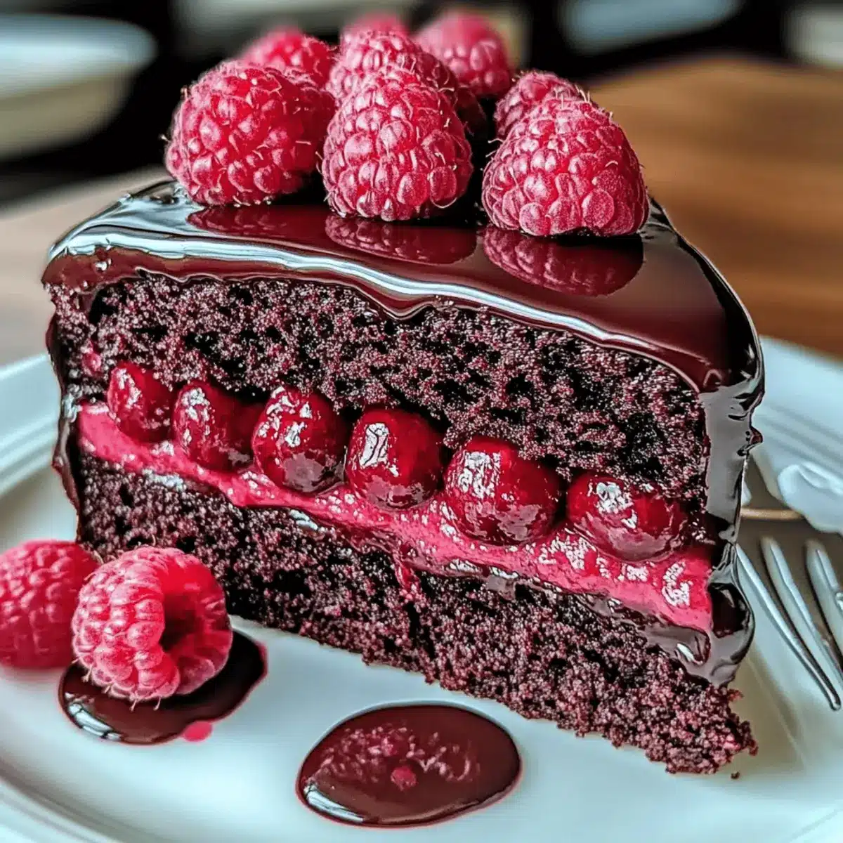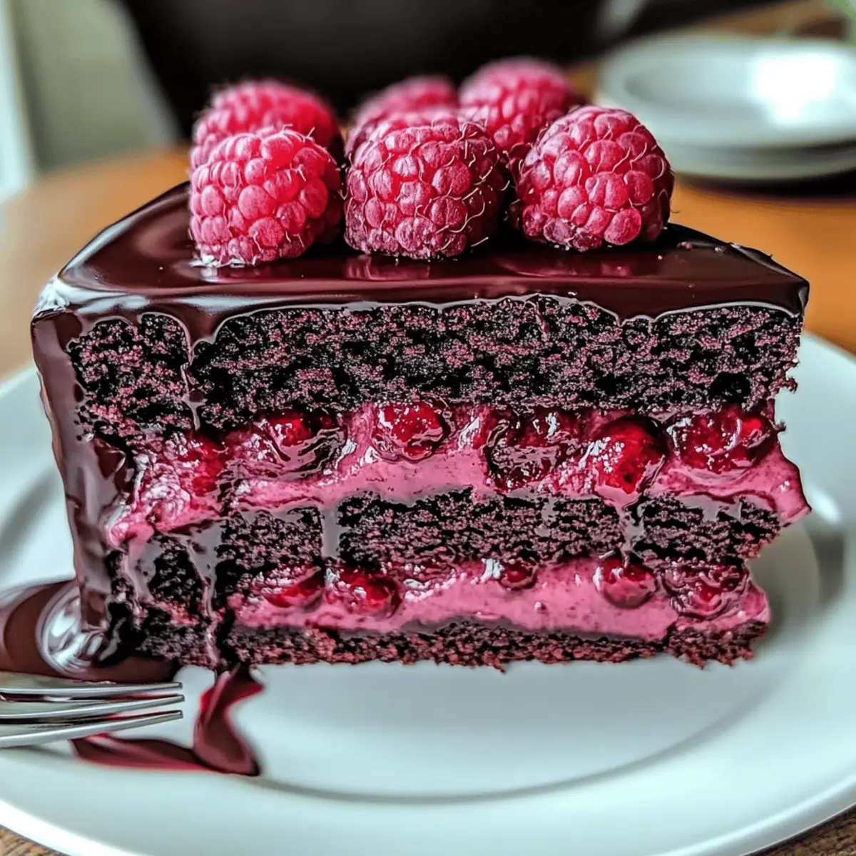 The aroma of freshly baked cake wafted through my kitchen, instantly transporting me back to cherished family gatherings filled with laughter and sweet indulgence. Today, I’m excited to share my recipe for an Easy & Moist Chocolate Raspberry Cake that embodies the spirit of celebration. This cake is not only stunning with its layers of rich chocolate and tart raspberry filling but also remarkably adaptable, making it a perfect choice for any occasion—whether you’re entertaining friends or simply treating yourself. Plus, it’s easy to customize for dietary needs, with gluten-free options available! Ready to impress your family or elevate your next gathering with this delicious twist on a classic dessert? Let’s dive into the irresistible details!
