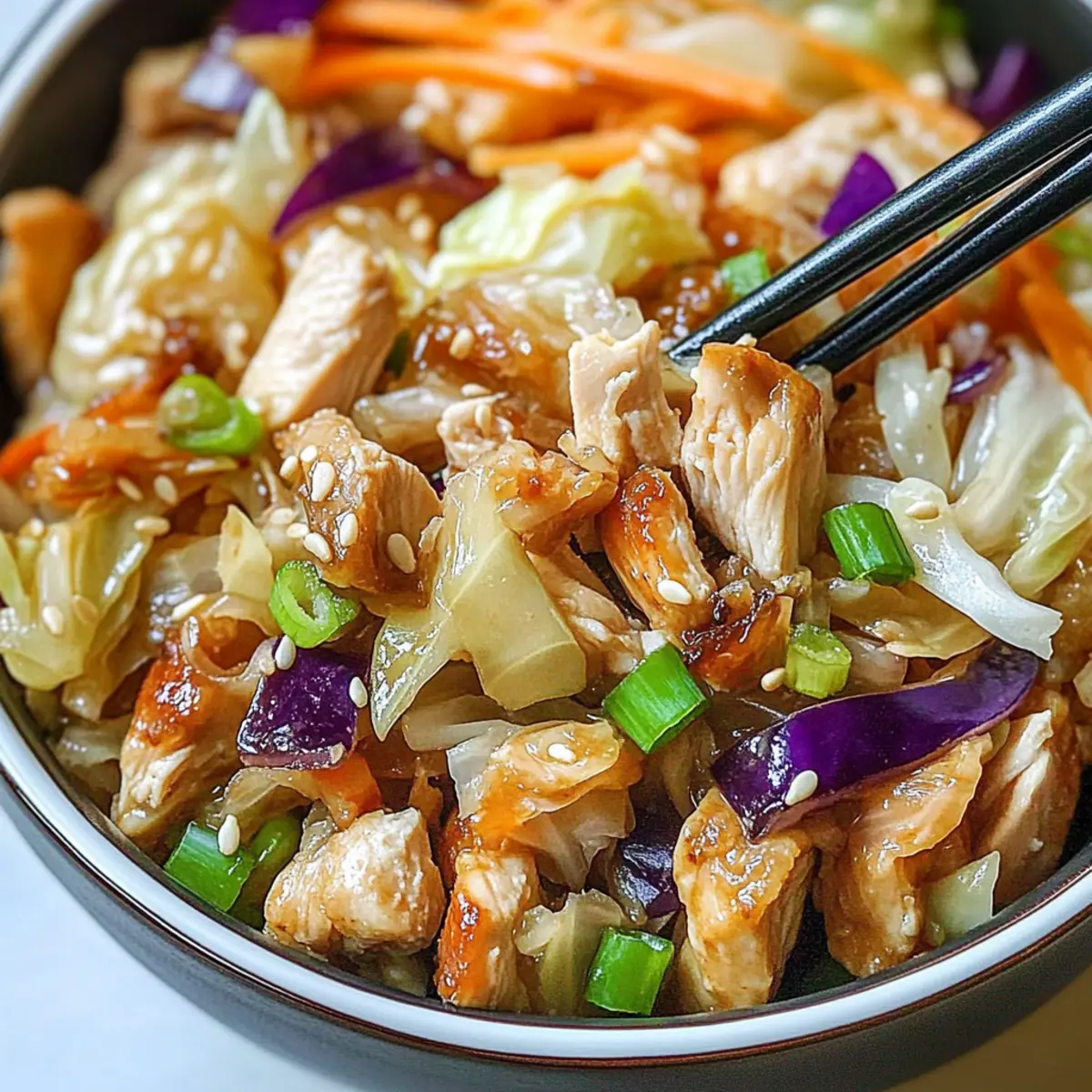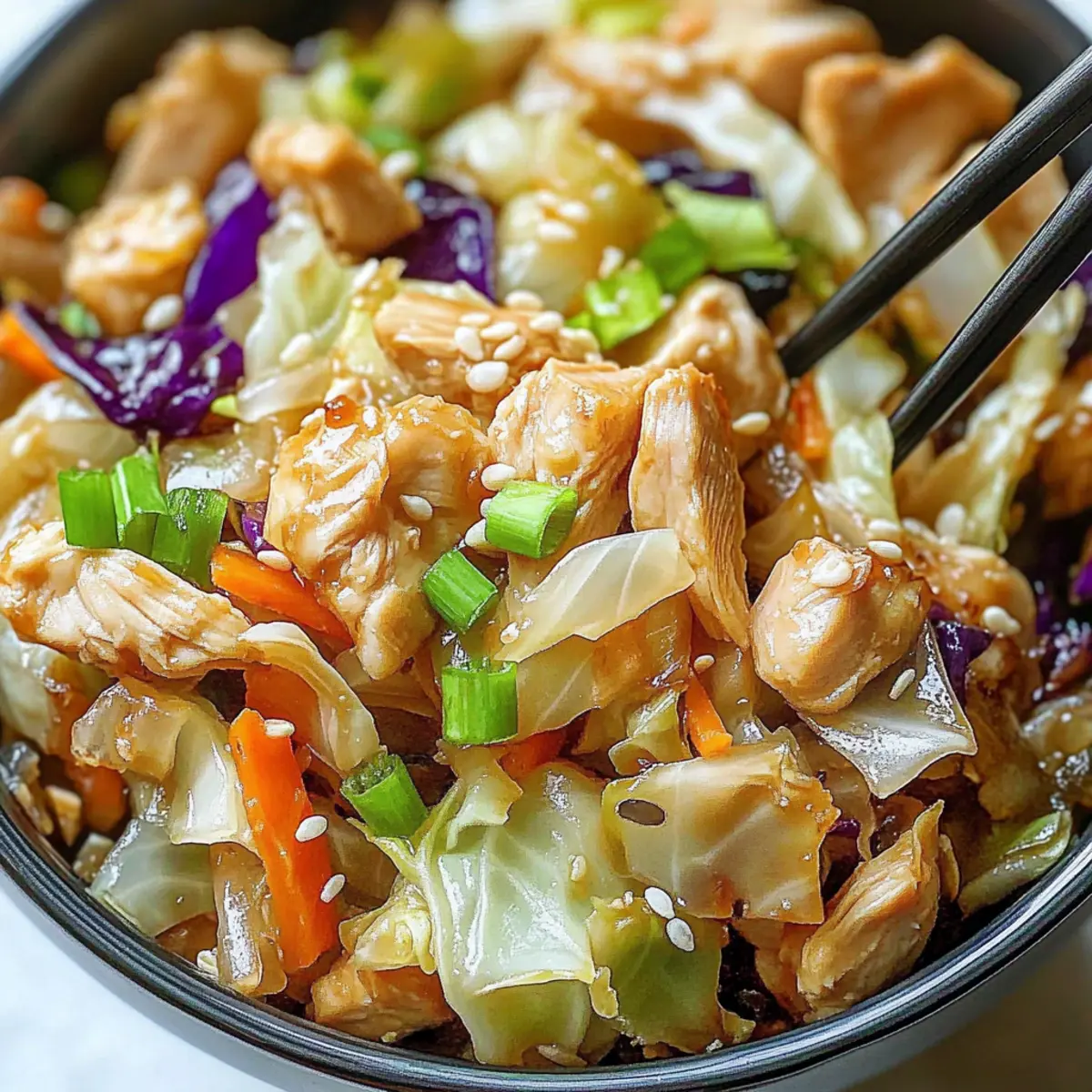 Very good question! Store your leftover Egg Roll Bowls with Chicken and Cabbage in an airtight container in the fridge for up to 3 days. To reheat, simply warm them in a skillet over medium heat until heated through, adding a splash of water if needed to prevent sticking. This method helps maintain the dish’s texture and flavor.