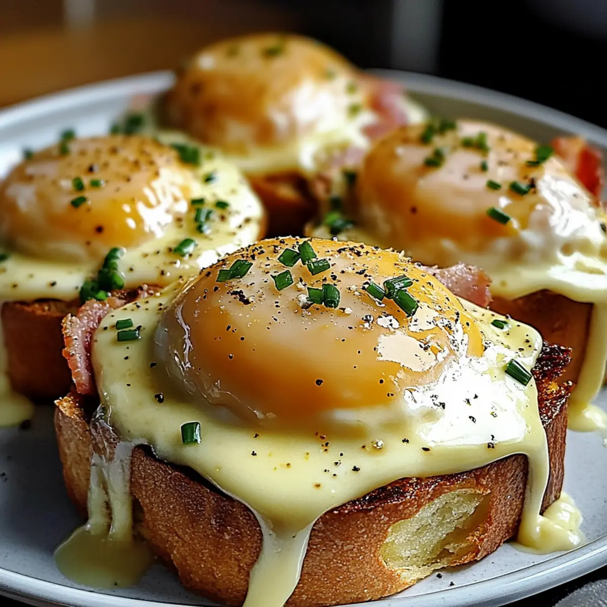 - English Muffins – These form the sturdy base; brioche or sourdough also work well.