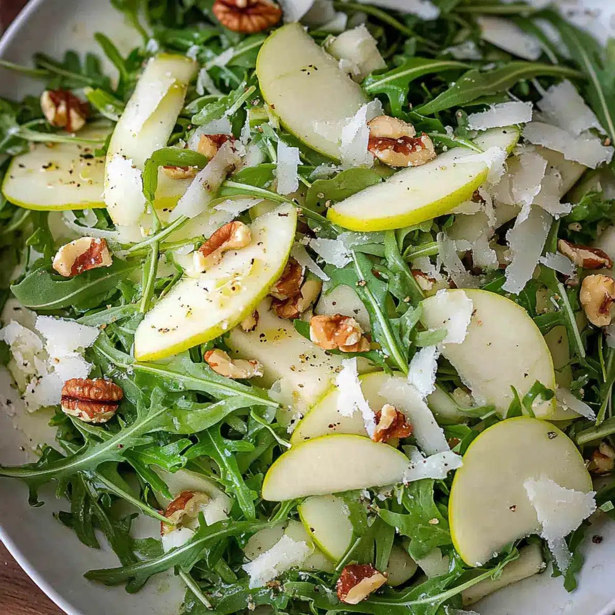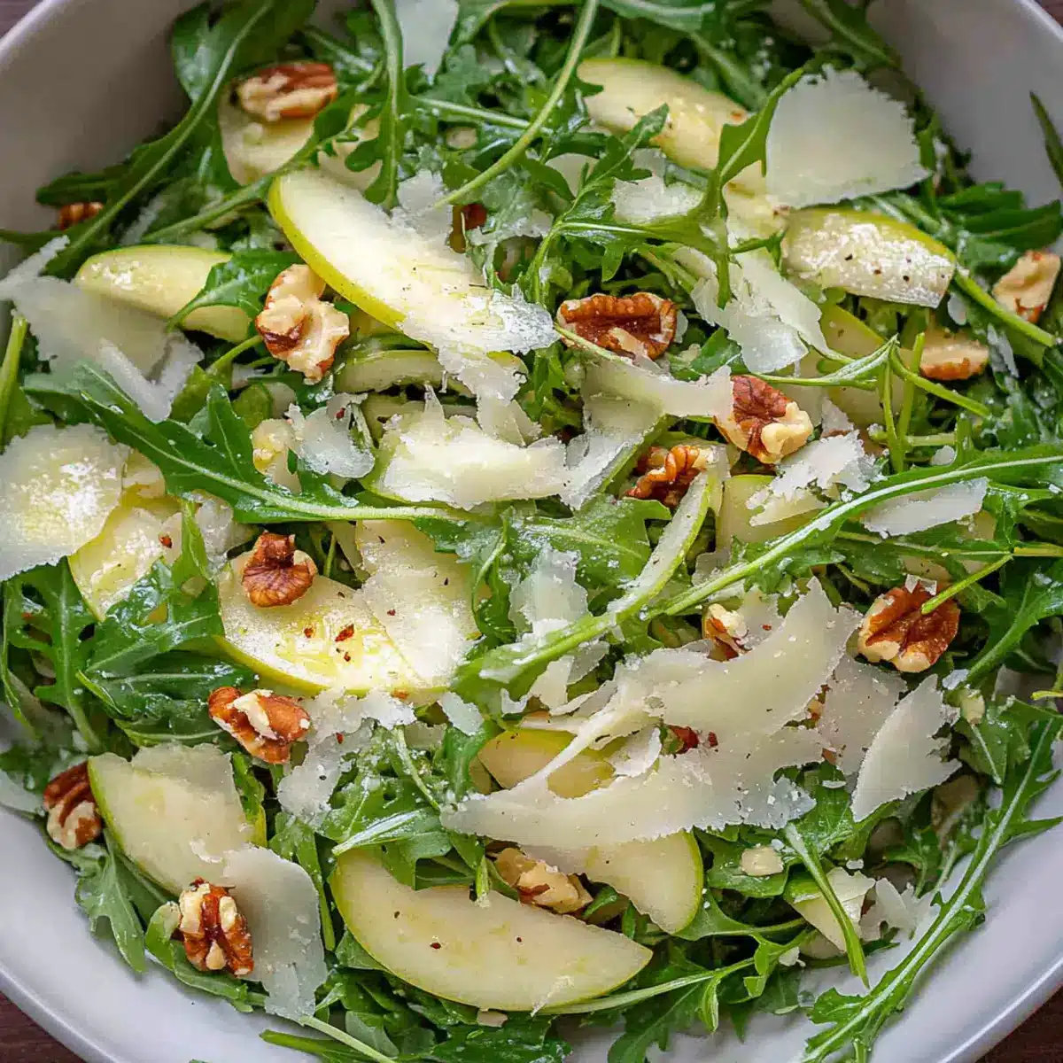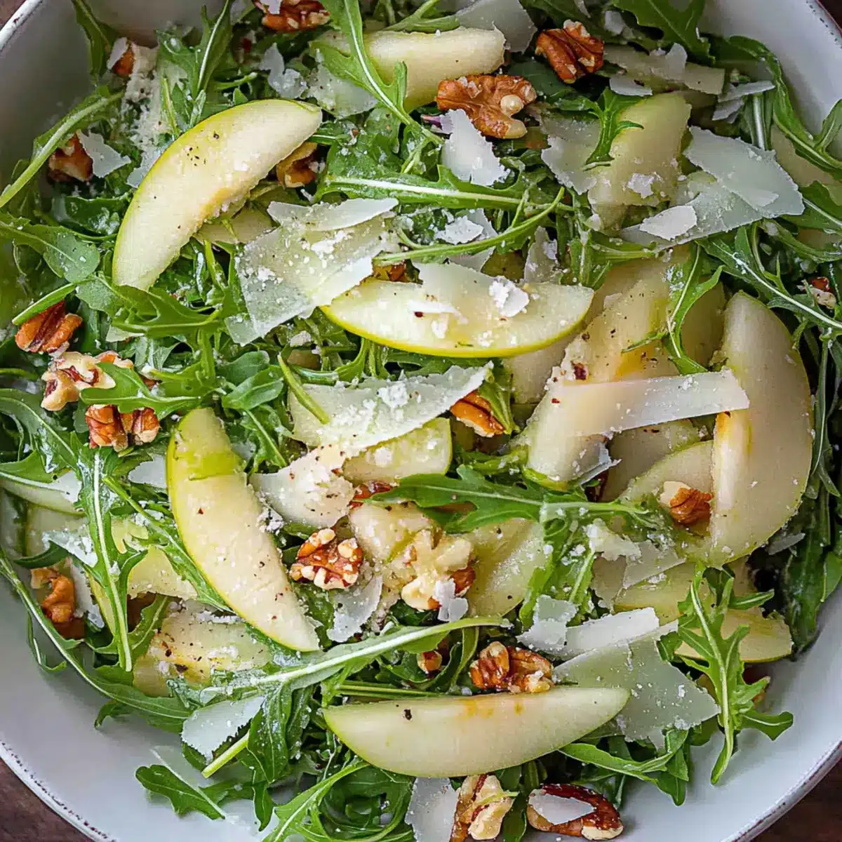 - Combine Ingredients: In a large bowl, combine arugula, sliced apples, fennel, and walnuts.