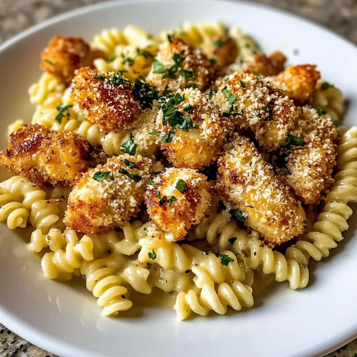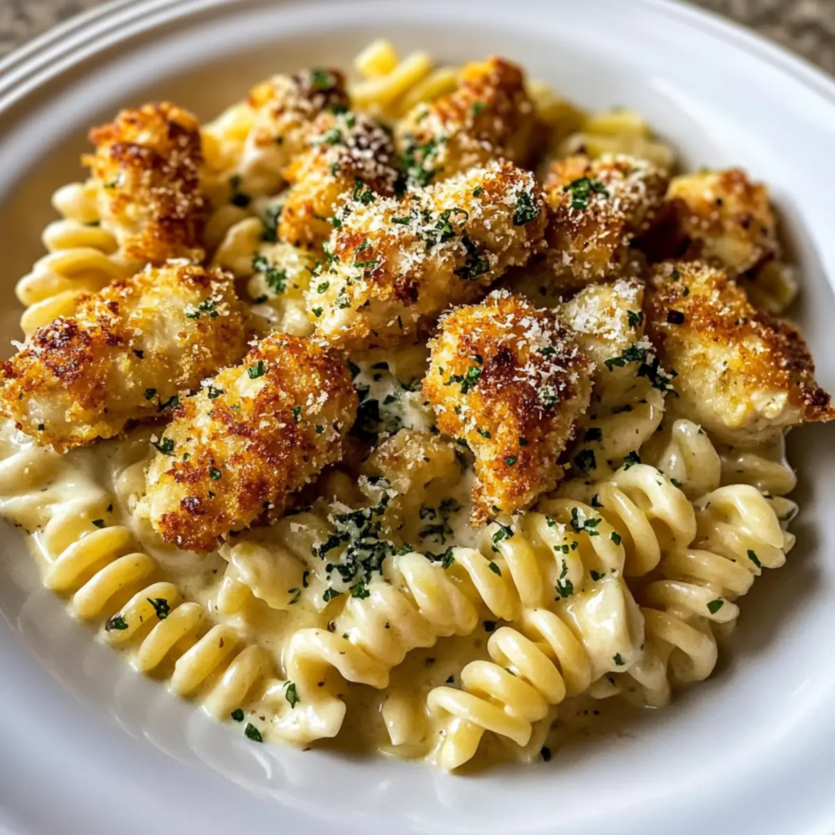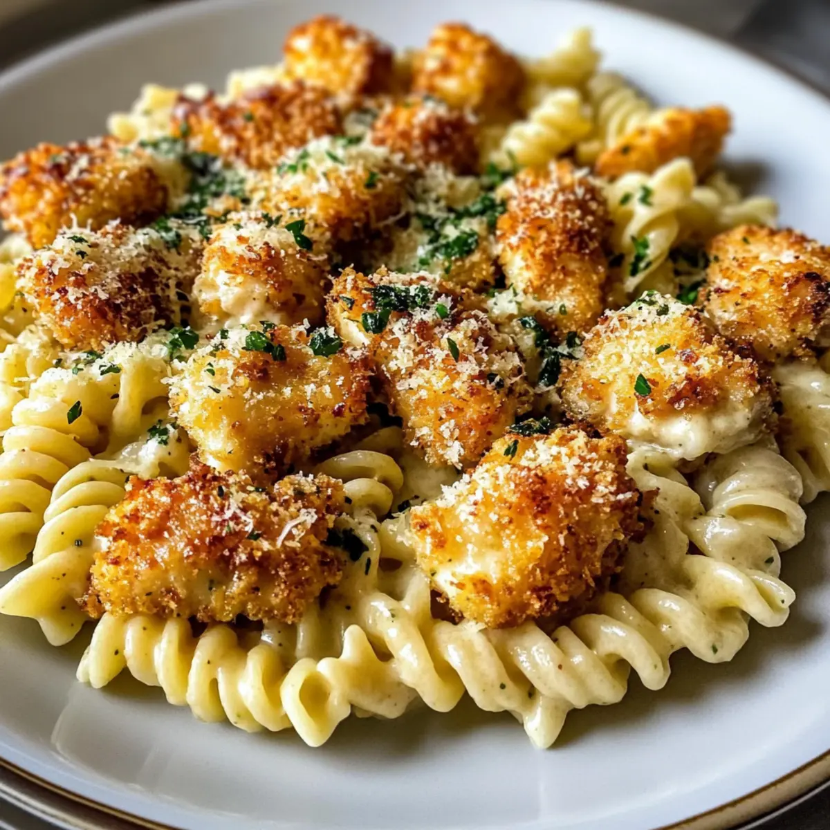 Garlic Parmesan Chicken Bites with Creamy Rotini Delight