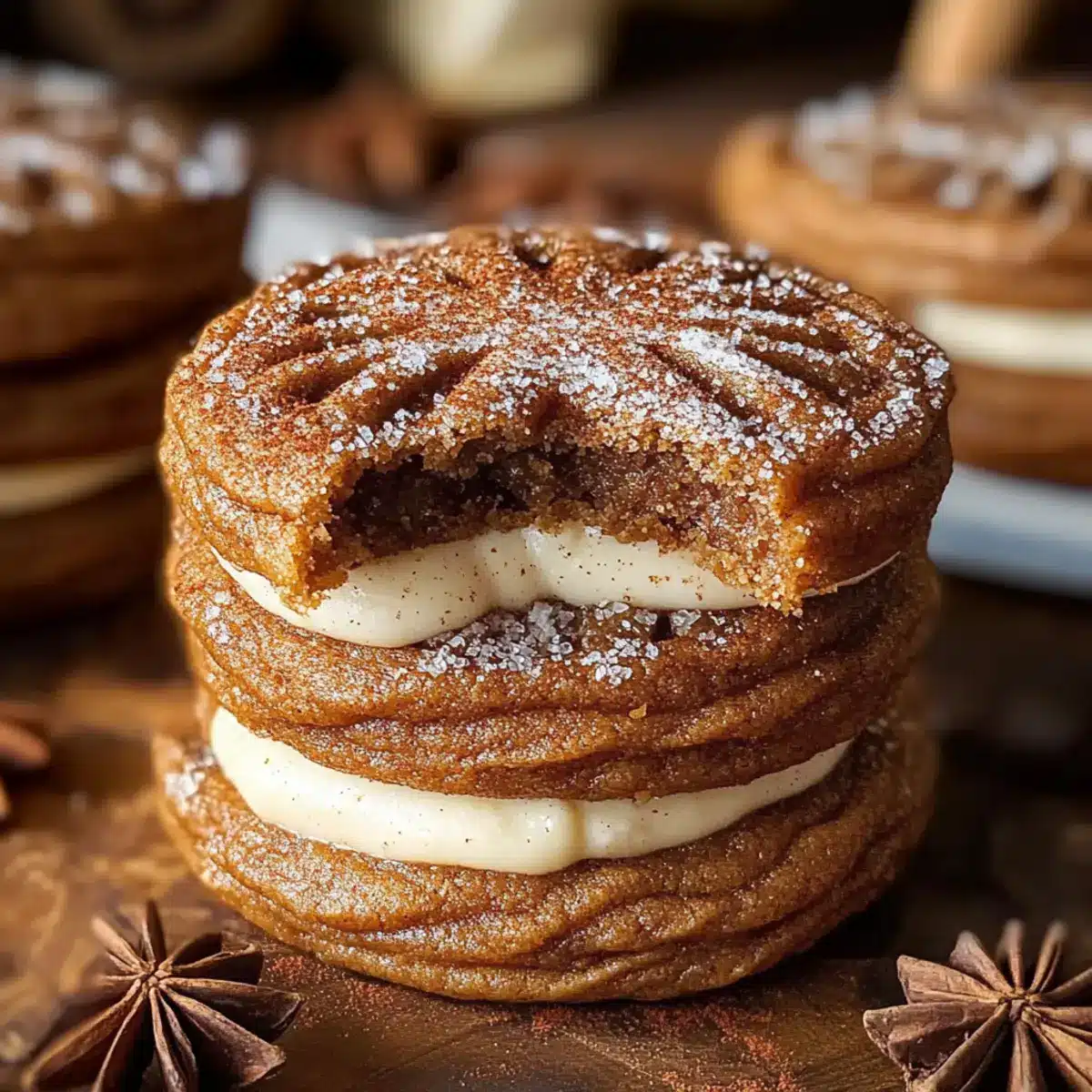 Bake the assembled Gingerbread Cheesecake Cookies in the preheated oven for 11-12 minutes, or until the edges are set and the tops are slightly cracked. Keep an eye on them, as you want them soft yet firm to the touch. Once baked, remove the cookies from the oven and let them cool on the baking sheet for a few minutes before transferring them to a wire rack to cool completely.