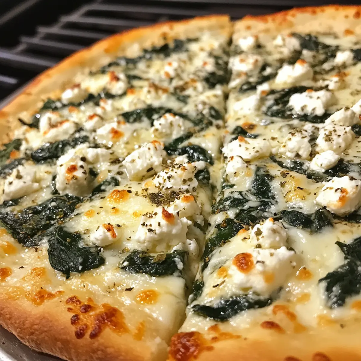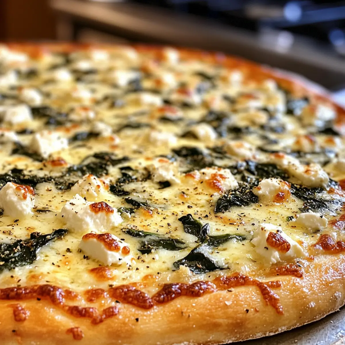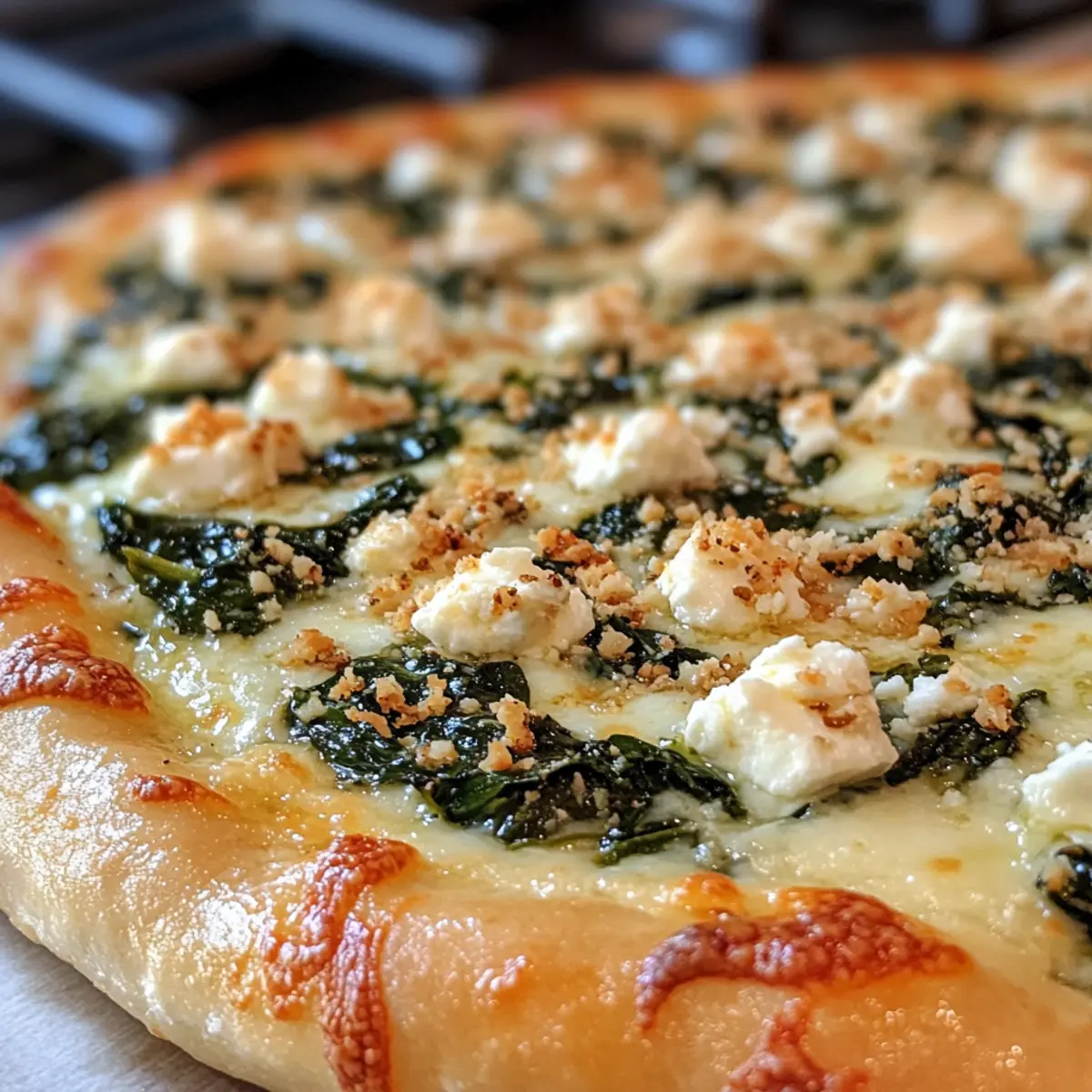 Creamy, Indulgent Flavor: The Greek Roasted Garlic Spinach White Pizza combines creamy ricotta, mozzarella, and tangy feta for a rich, luxurious taste.