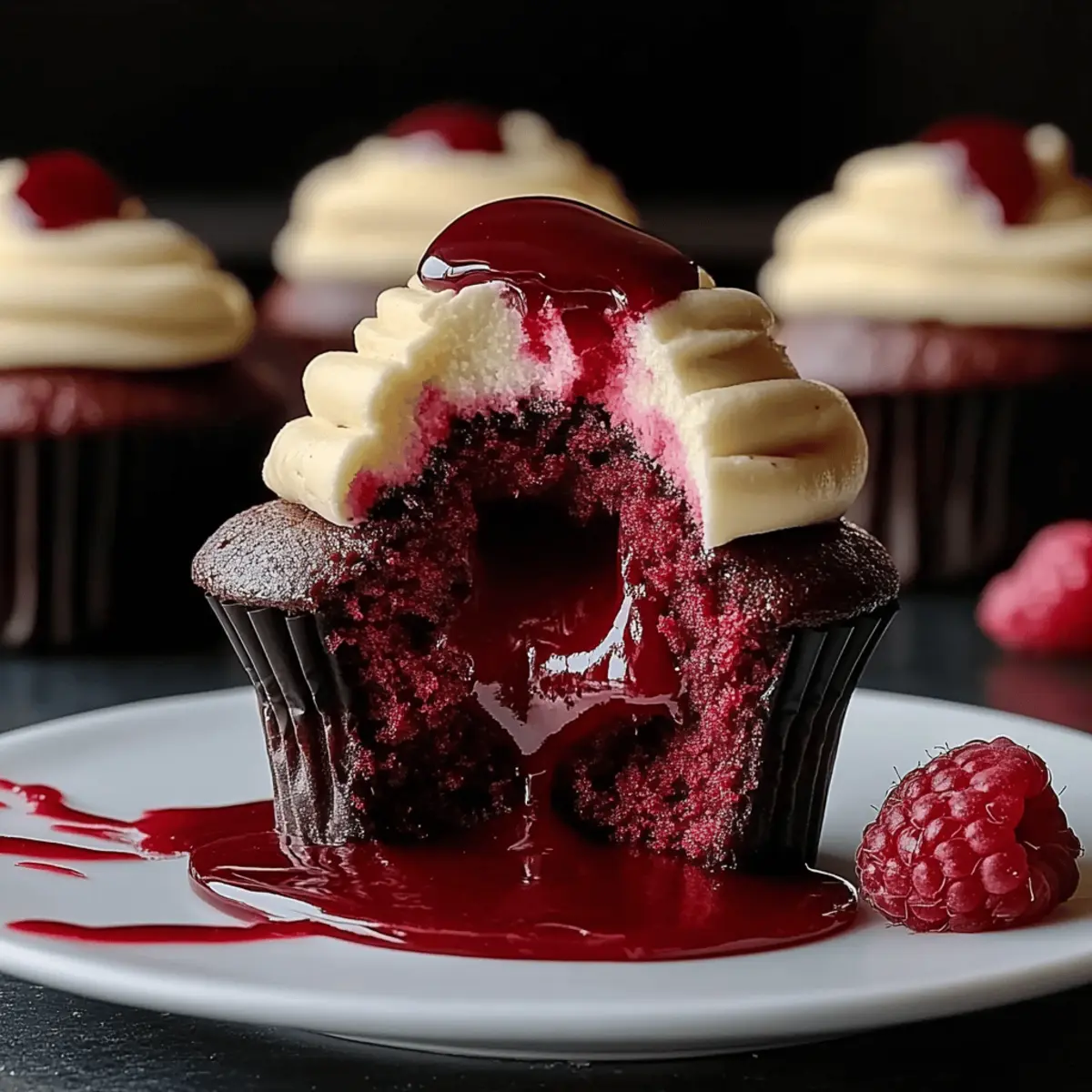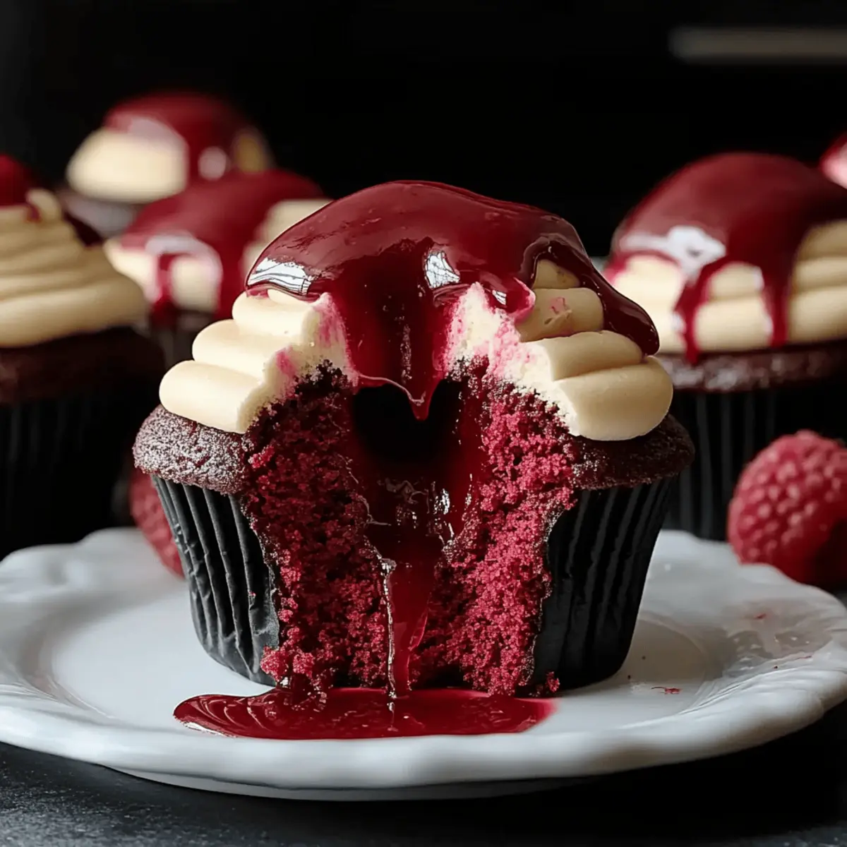 Impressive Presentation: Topped with vibrant red frosting and fresh raspberries, they look as good as they taste—perfect for Halloween parties!