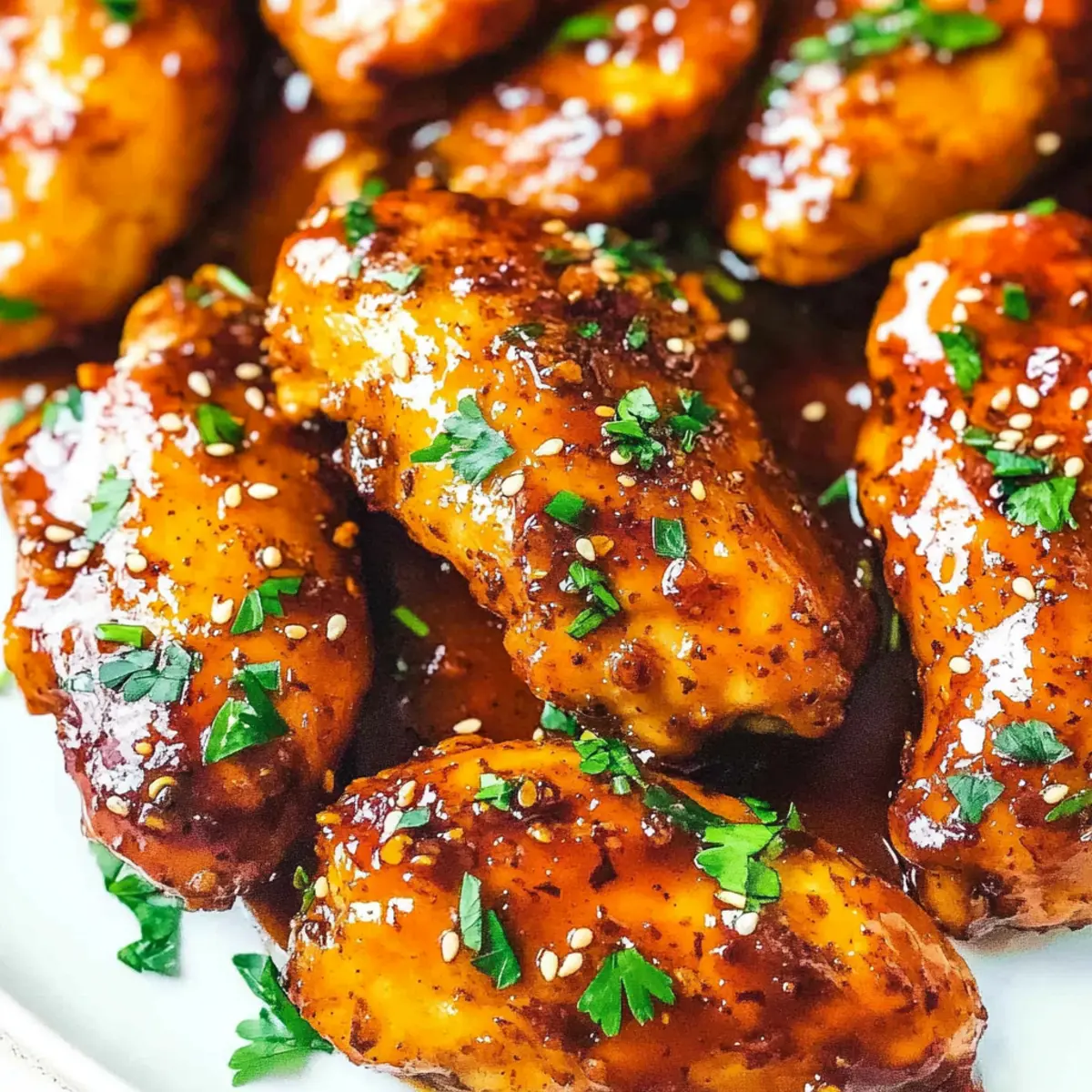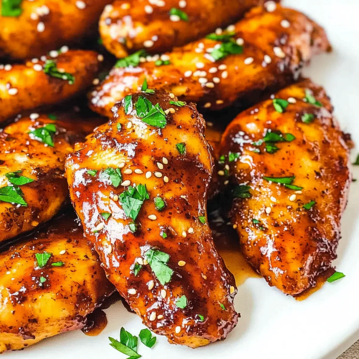 - Transfer the glazed tenders to a serving plate and garnish with parsley or sesame seeds if desired. Serve hot with rice, noodles, or salad.