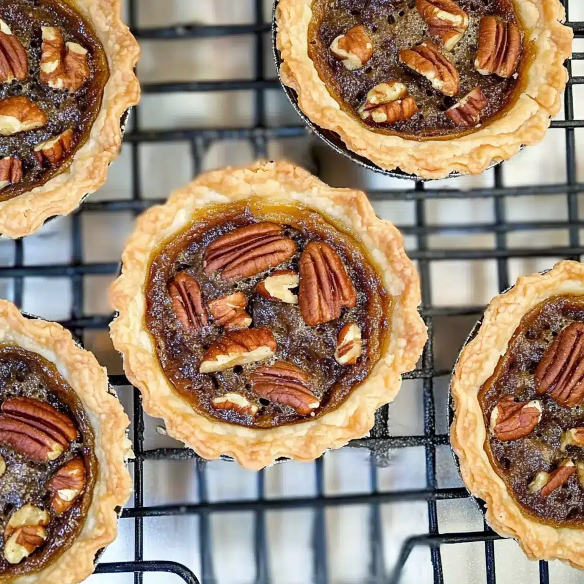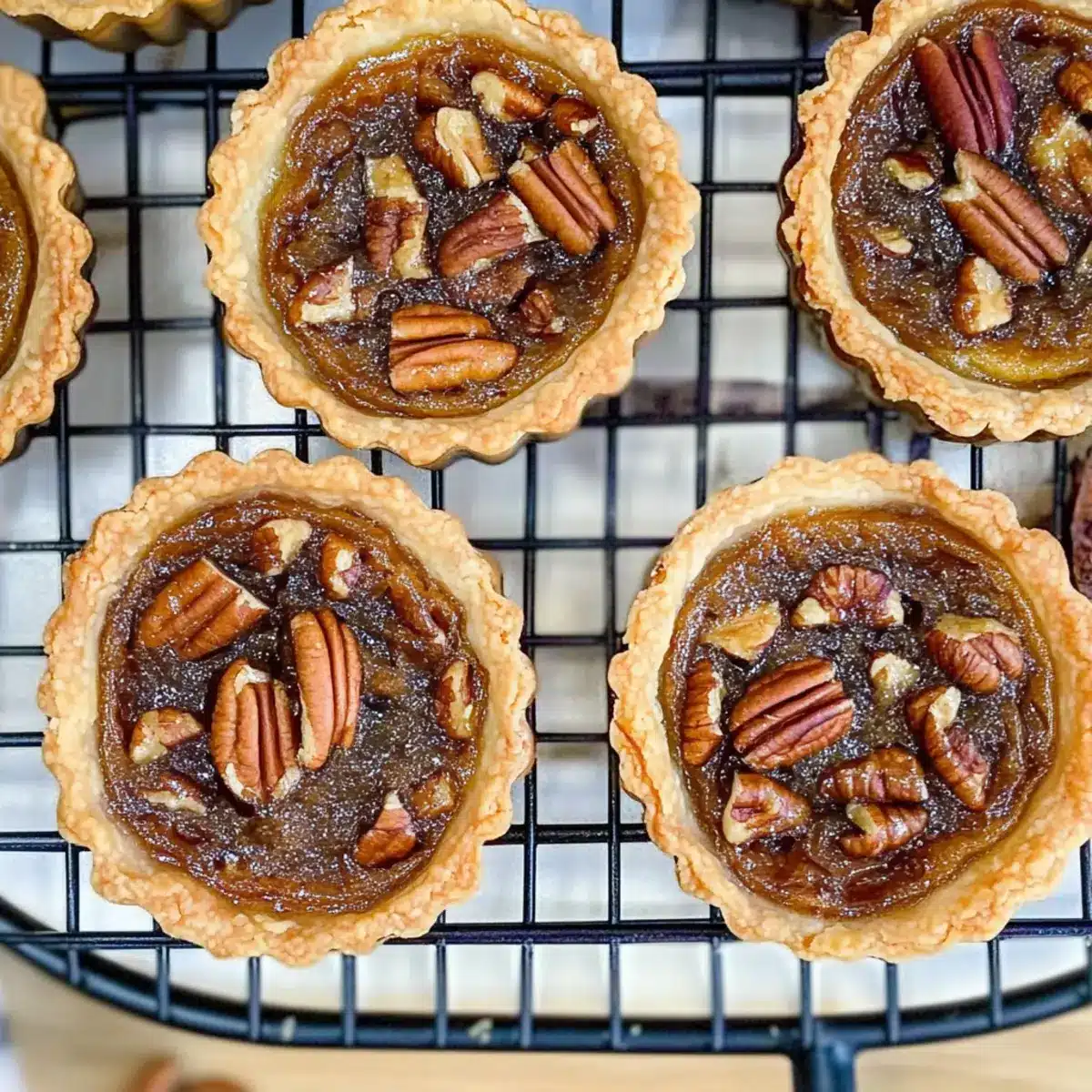 Place the filled tart shells in the preheated oven and bake for 22-25 minutes. Keep an eye on them as they bake; you want the edges of the pastry to turn golden brown while the center remains a bit soft yet set. The sweet aroma of maple and pecans will fill your kitchen during this time, creating excitement for the upcoming treat!