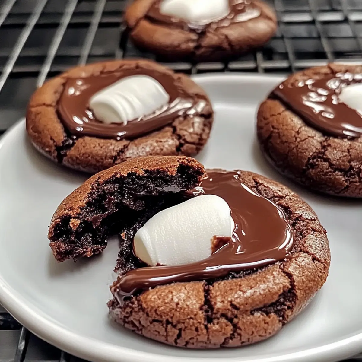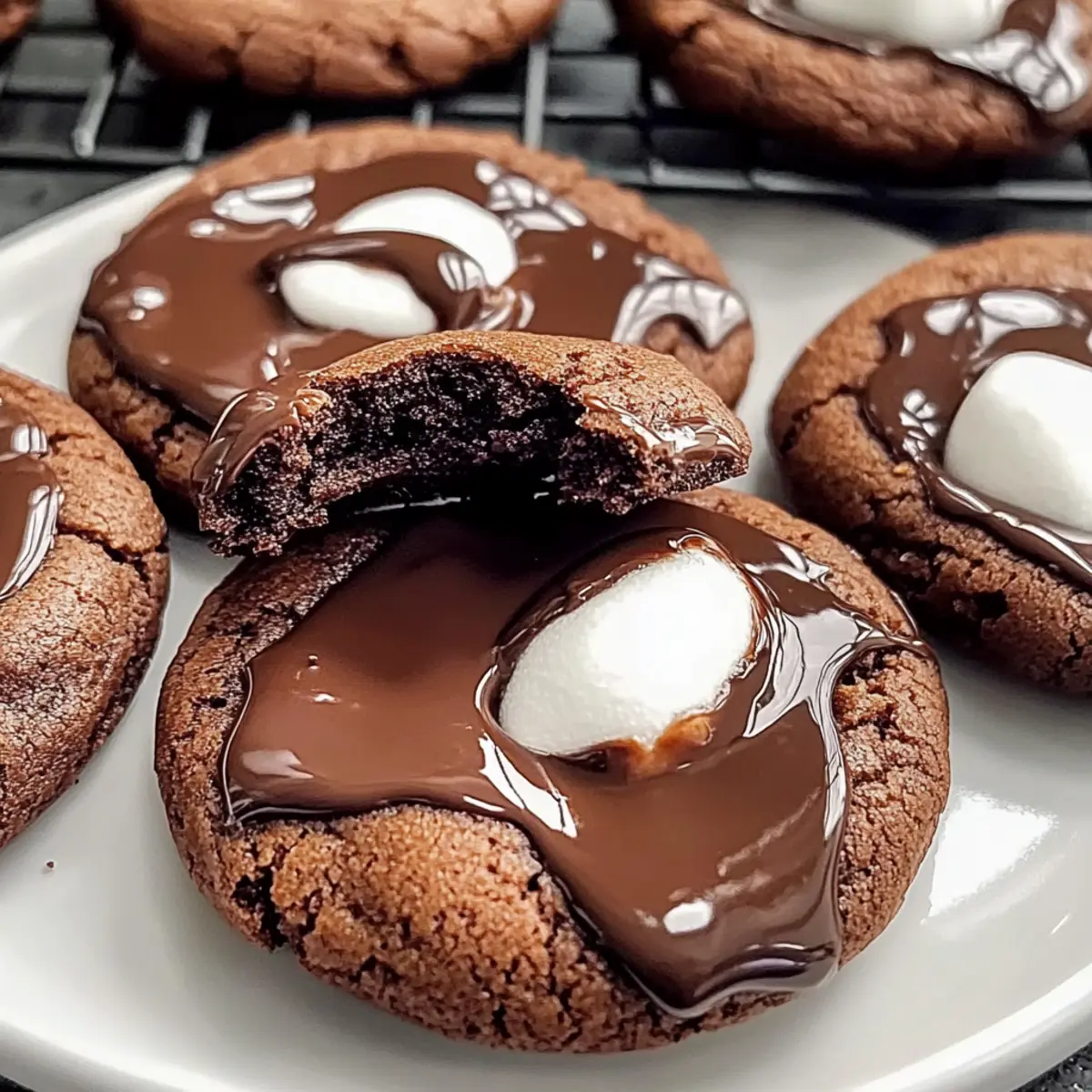 Once baked, allow the cookies to cool on the baking sheet for about 10 minutes. During this time, melt ½ cup of semi-sweet chocolate in a microwave or double boiler until smooth. After cooling, drizzle the melted chocolate generously over each cookie, allowing it to set before serving. This final touch adds a glossy, decadent finish to your Marshmallow Hot Cocoa Surprise Cookies!