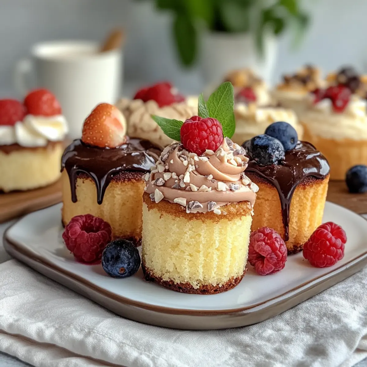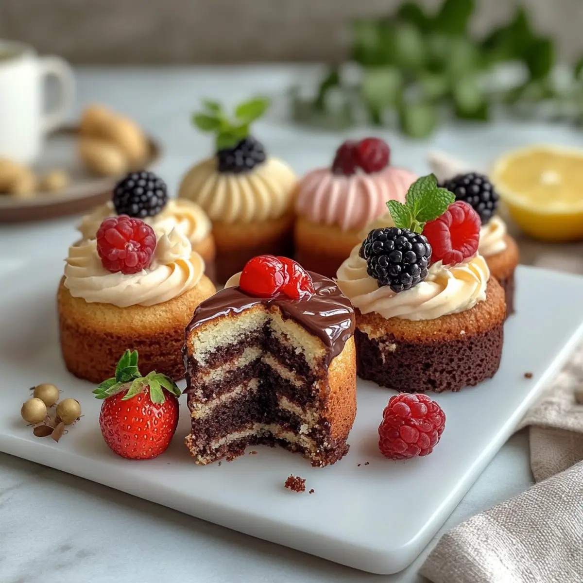 Fresh Berries: Bright, juicy berries add a burst of flavor and vibrant color, perfectly complementing the sweetness of the mini cakes.