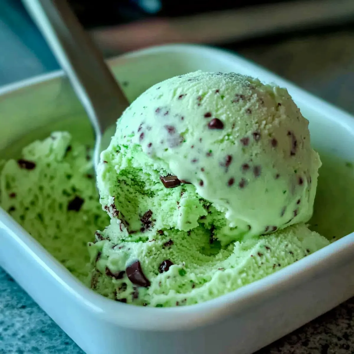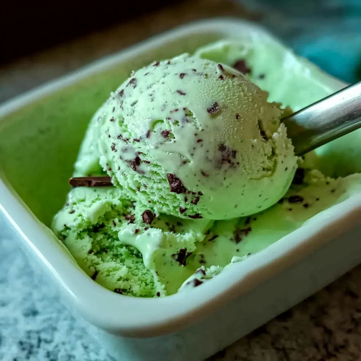When you’re ready to enjoy your homemade Mint Chocolate Chip Ice Cream, take it out of the freezer and let it sit at room temperature for about 5 minutes to soften slightly for easy scooping. Serve in bowls or cones, perhaps with a drizzle of dark chocolate for an extra indulgent touch!