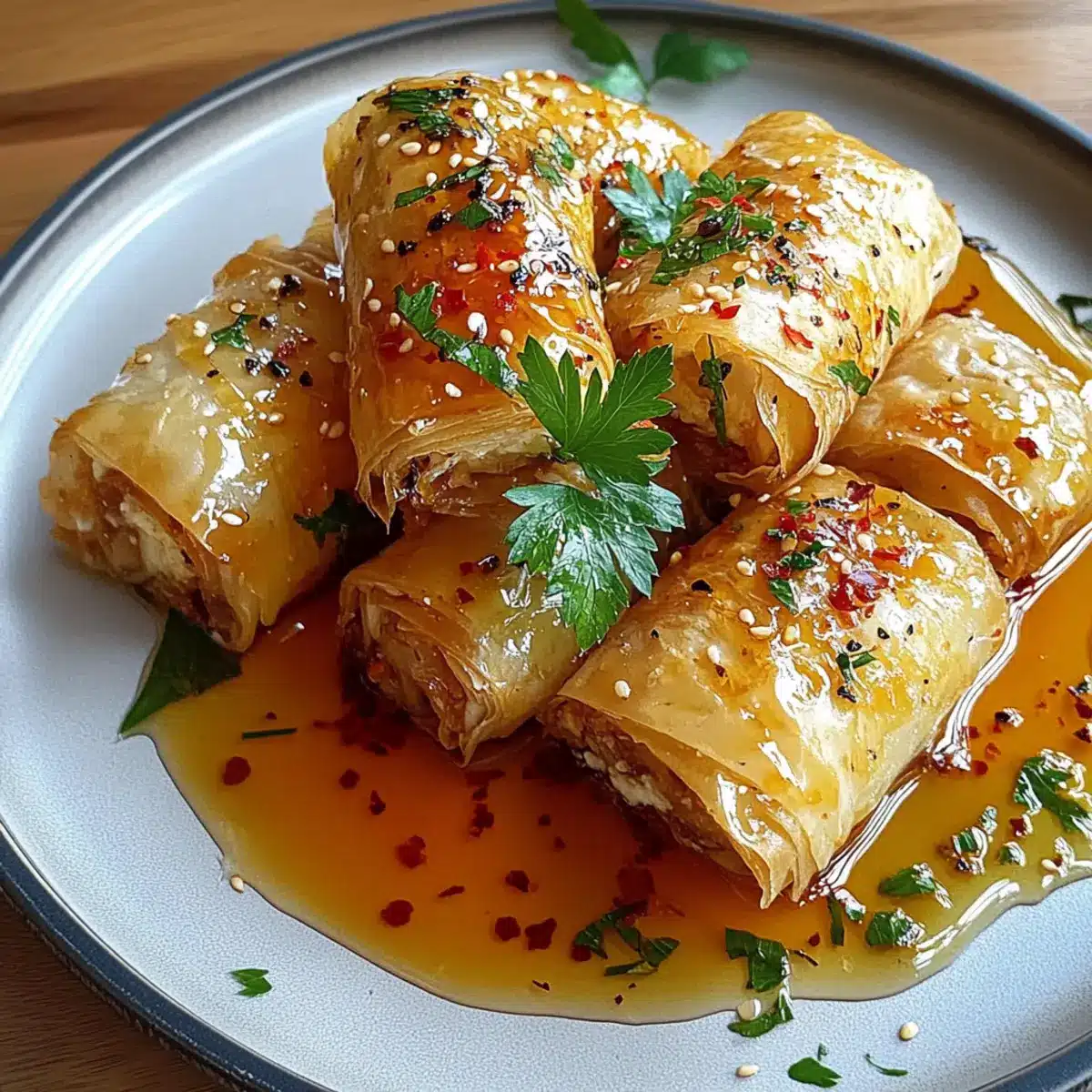 Different Drizzle: Create a balsamic reduction instead of the chili honey for a sweet and tangy finish. It offers a rich, contrasting flavor that complements the crispy rolls while giving them an elegant touch.