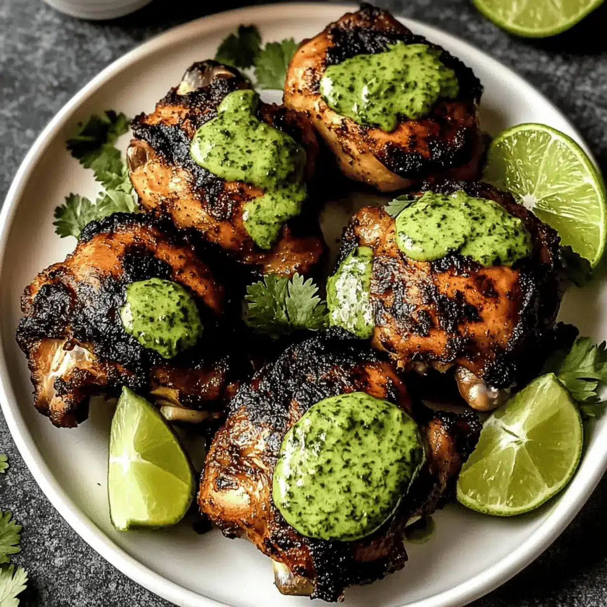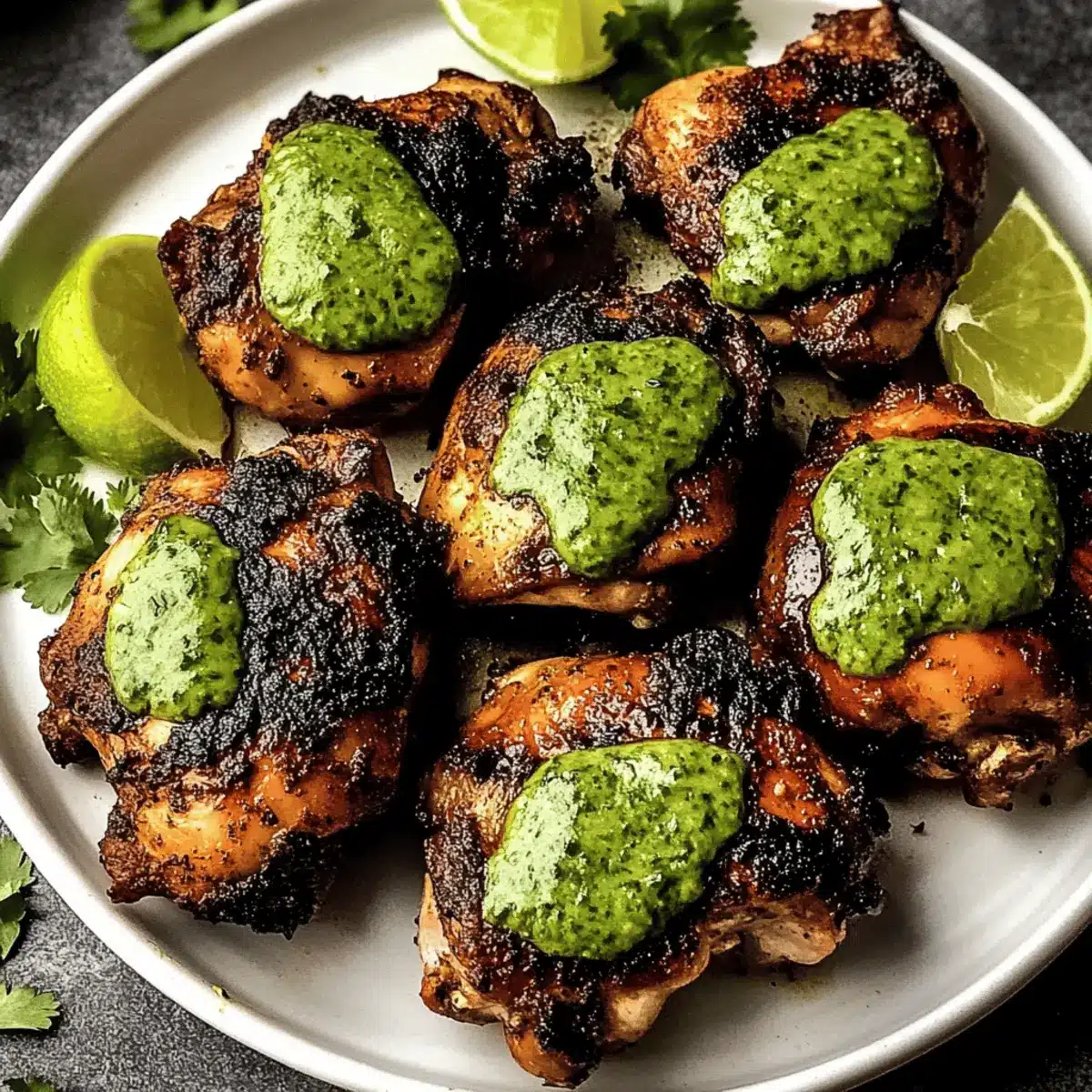 Preheat your grill to medium-high heat, reaching about 350°F. While the grill heats, remove the chicken from the marinade and let any excess drip off. Grill the marinated chicken thighs for 5–6 minutes on each side, or until they reach a beautifully charred exterior and an internal temperature of 165°F for safe eating.