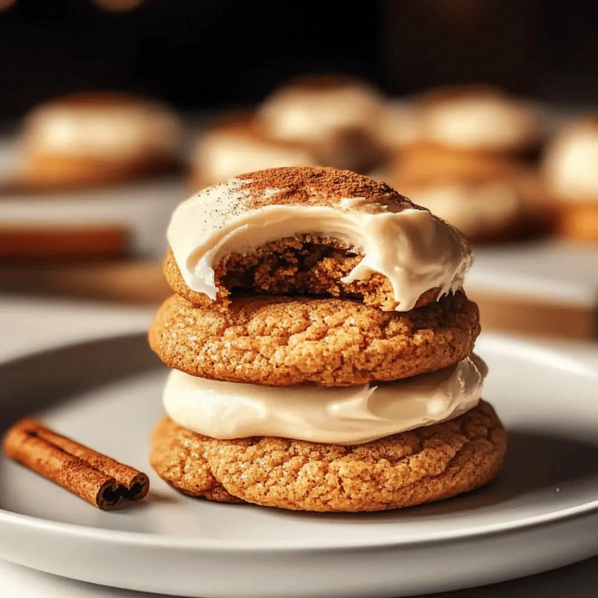- Once cookies are completely cooled, frost each with a generous layer of cream cheese frosting. Optionally, sprinkle a pinch of cinnamon or pumpkin pie spice on top.