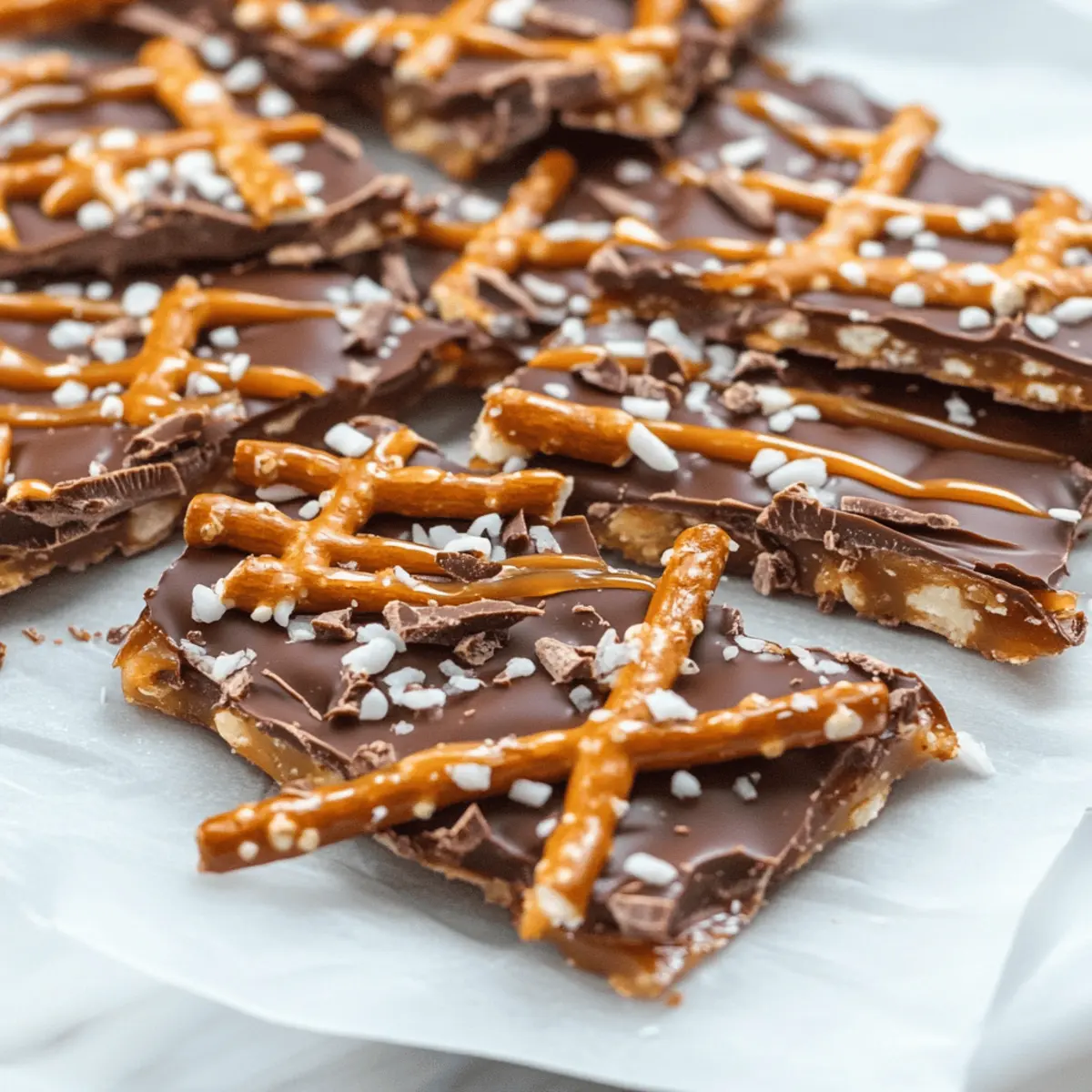 Even Layers: Spread the chocolate and caramel evenly; this balance enhances the flavors and texture of your Salted Caramel Pretzel Bark.