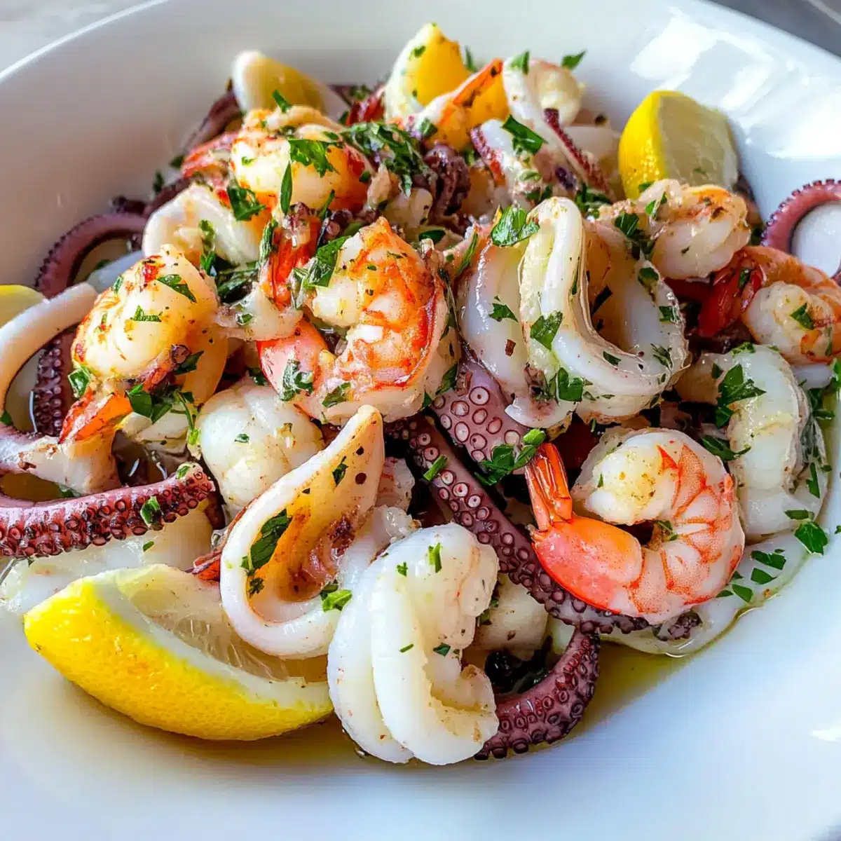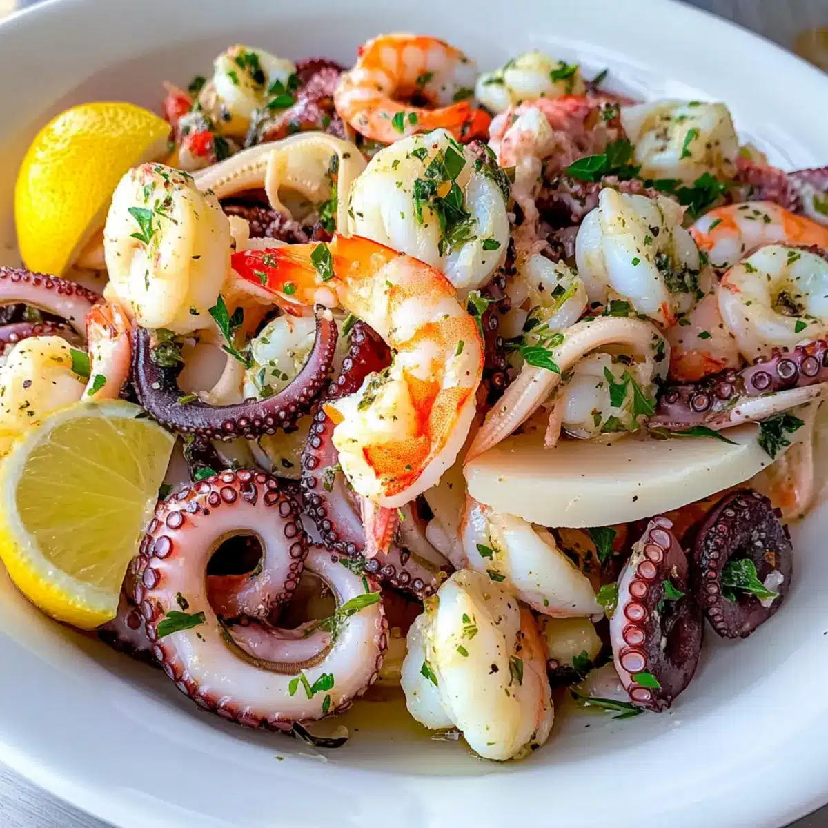 Allow the seafood salad to rest at room temperature for a few minutes to let the flavors meld. This dish can be served as a refreshing appetizer or a light main course. Consider garnishing with additional parsley for visual appeal. With its vibrant colors and delicious flavors, your Italian Seafood Salad is ready to impress everyone at the table!