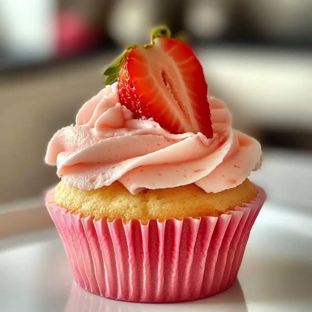 Reheating: Thaw frozen cupcakes in the fridge overnight before frosting or microwaving briefly on low power. Adding a fresh dollop of strawberry buttercream after reheating brings them back to life!