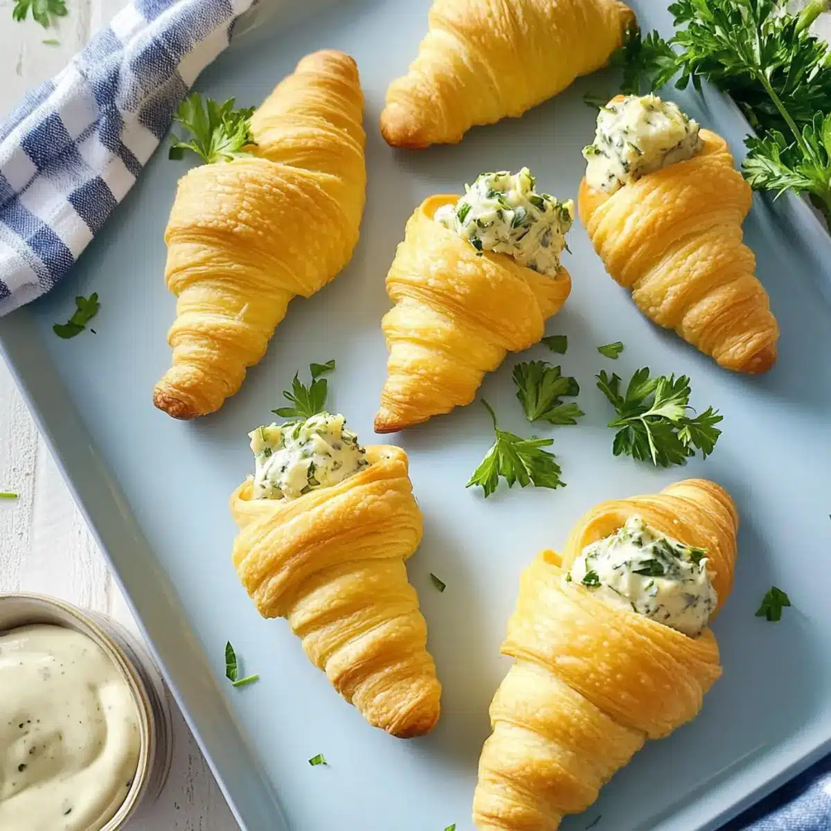 To finish off your adorable Stuffed Crescent Roll Carrots, top each filled carrot with a small sprig of fresh parsley. This garnish not only resembles carrot tops but also adds a touch of color and freshness to your presentation, making them irresistible on any table.